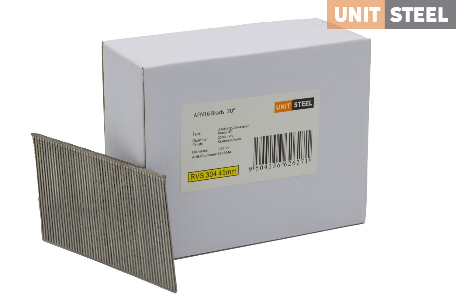 UnitSteel 20° Schuine Brads 1,6x45mm RVS: Met de UnitSteel 20° Schuine Brads van 1,6x45mm in roestvrij staal ben je verzekerd van duurzame en precieze prestaties, of je nu een professionele aannemer of een gepassioneerde doe-het-zelver bent. Deze roestvrijstalen brads bieden uitstekende corrosiebestendigheid, waardoor ze ideaal zijn voor zowel binnen- als buitentoepassingen. Of je nu werkt aan kroonlijsten, meubelmontage, of een ander precisiewerk, deze brads met gladde schachtafwerking zorgen voor een sterke en nette bevestiging. Vertrouw op de betrouwbaarheid van UnitSteel en voltooi je projecten met ongeëvenaarde precisie.