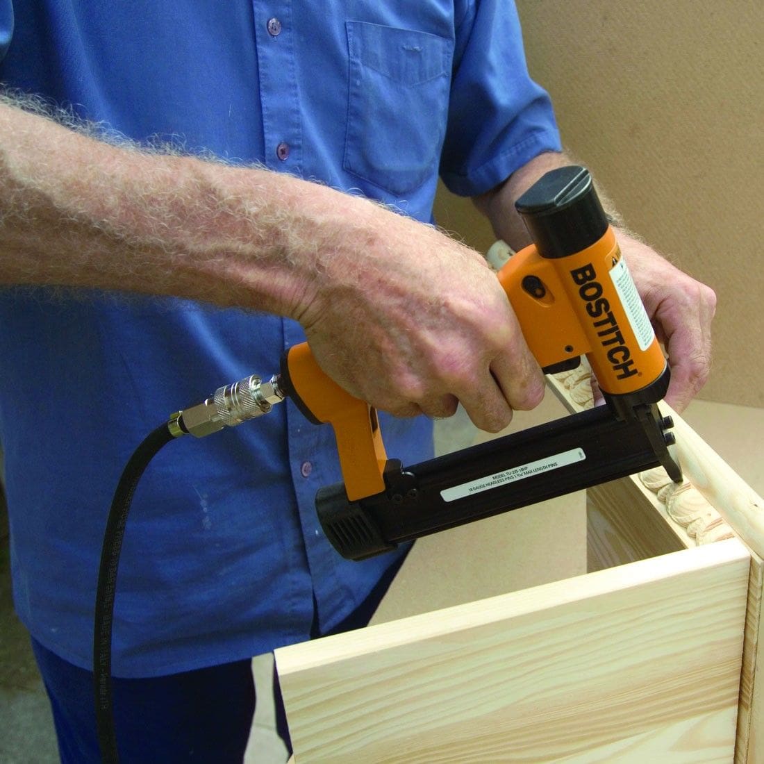 Deze koploze tacker is speciaal ontworpen voor fijn en gedetailleerd werk. De Bostitch TU-216-2330K-E is kleiner dan de 18-gauge pinner (minibradnailer), en is ideaal voor het fijnere lijstwerk, voor kraaldelen en zelfs voor het vastspijkeren van onderdelen terwijl de lijm droogt. Het magazijn is uitgerust met een automatische instelling . U hoeft dus niets handmatig in te stellen als u andere spijkers plaatst.