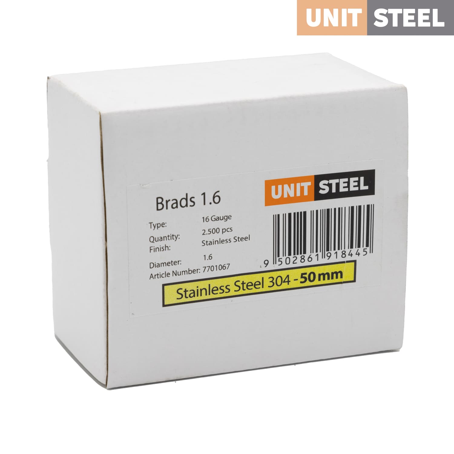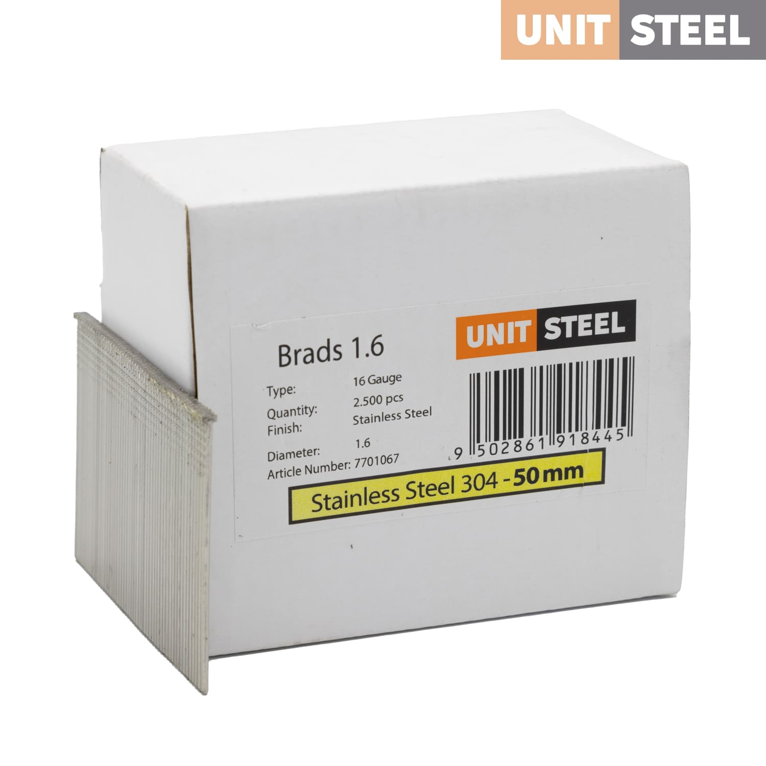 UnitSteel Brads 1,6X50mm RVS: Onze UnitSteel Brads 1,6X50mm RVS bieden duurzaamheid en prestaties van topklasse. Deze roestvrijstalen brads zijn bestand tegen corrosie, waardoor ze perfect zijn voor binnen- en buitentoepassingen. Hun 50 mm lengte maakt ze veelzijdig voor uiteenlopende projecten, van houtbewerking tot interieurafwerking. Met deze RVS brads maak je moeiteloos sterke en duurzame verbindingen. Ze zijn de ideale keuze voor professionals die hoogwaardige bevestigingen nodig hebben. Bestel vandaag nog UnitSteel Brads 1,6X50mm RVS en ervaar de voordelen van kwaliteit en duurzaamheid in één.