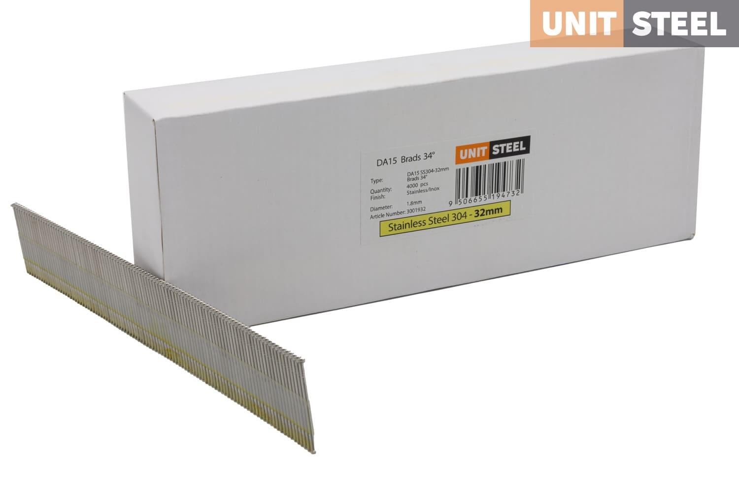 UnitSteel Da Brads 1,8x32mm RVS DA15EGB: Deze RVS UnitSteel Da Brads van 32mm zijn speciaal ontworpen voor buitentoepassingen. Met hun roestvrijstalen constructie bieden ze uitstekende duurzaamheid en corrosiebestendigheid, zelfs onder verschillende weersomstandigheden. Gebruik deze DA brads met een 15-graden hoek voor diverse buitenprojecten, zoals gevelbekleding, buitentimmerwerk en constructie van tuinstructuren. Ze zorgen voor stevige verbindingen en een professionele afwerking in buitentoepassingen.