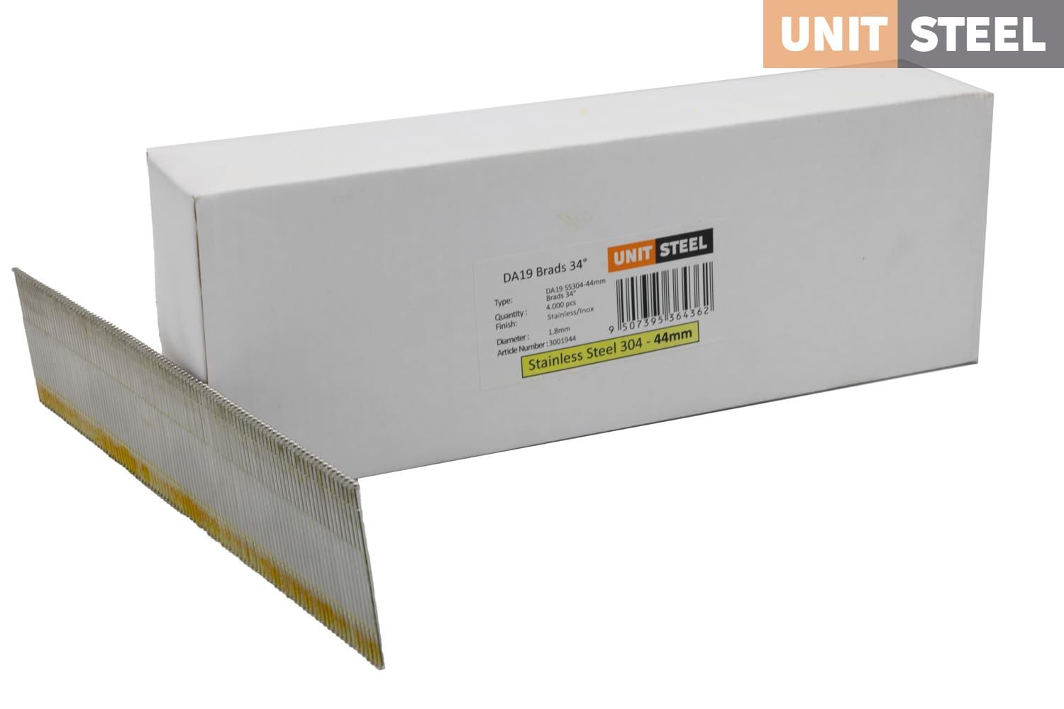 UnitSteel Da Brads 1,8x44mm RVS DA19EGB: Met een lengte van 44mm zijn deze RVS UnitSteel Da Brads ideaal voor diverse buitentoepassingen. Dankzij hun roestvrijstalen constructie bieden ze uitstekende duurzaamheid en corrosiebestendigheid, zelfs onder uitdagende weersomstandigheden. Gebruik deze DA brads met een 19-graden hoek voor het bevestigen van gevelbekleding, buitentimmerwerk en constructie van houten structuren in tuinen en terrassen. Ze zorgen voor stevige verbindingen en een professionele afwerking in buitentoepassingen.