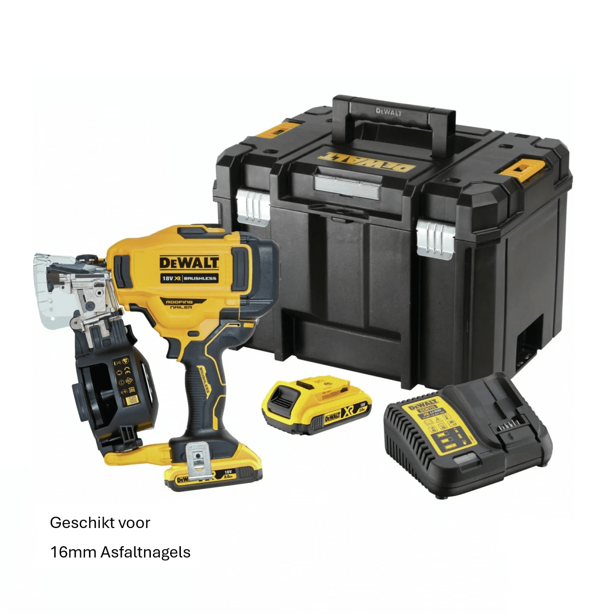 De DeWalt DCN45RND-QW is een accutacker die op een 18V 2.0Ah Li-ion accu wordt aangedreven. Dit betekent dat de verbruikskosten laag zijn en er bij lage tempraturen gewerkt kan worden. De brushless motor biedt een unieke werktijd in een compacte behuizing. Deze tacker is geschikt voor stevige bevestigingen van Asfaltnagels/Roofingnails. Schiet tot 500 nagels per lading op een 2.0Ah accu of 1300 op een 5.0Ah accu