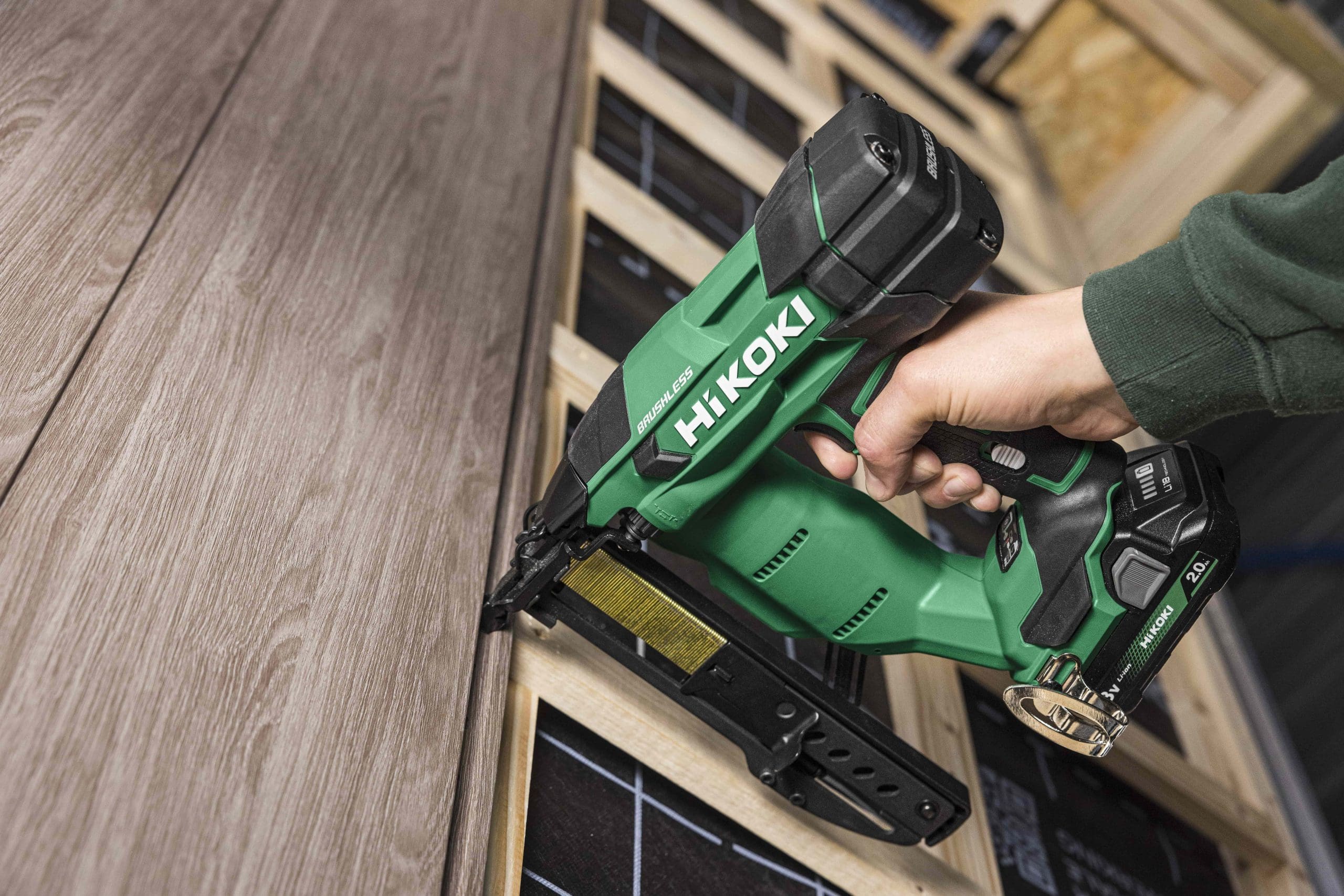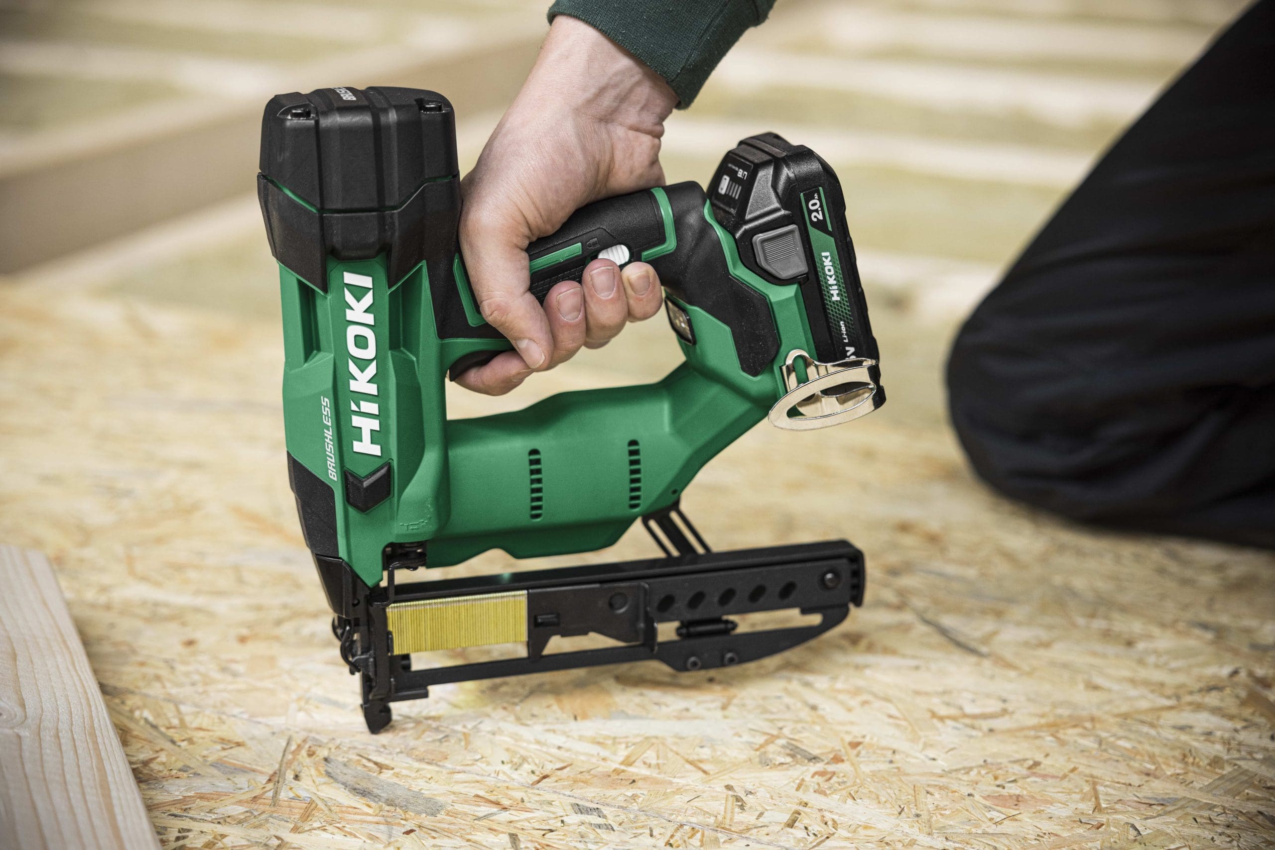 Deze Hikoki werkt op accu, dus geen gebruik van gaspatroon en/of compressor met luchtslang.