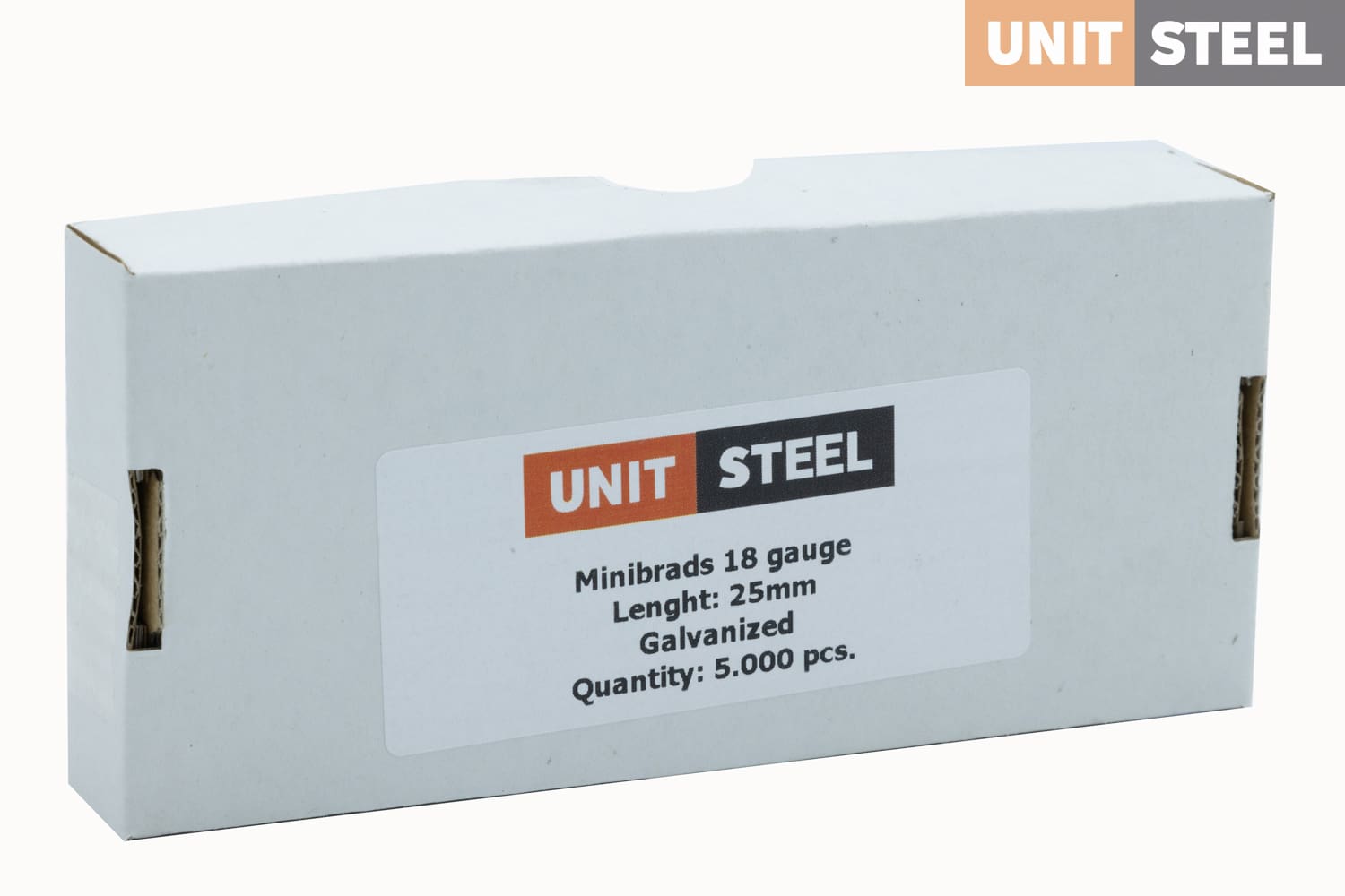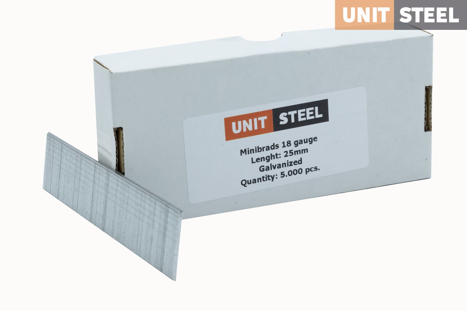 UnitSteel Minibrads 1,2X25mm Gegalvaniseerd: Deze gegalvaniseerde Minibrads van UnitSteel, met een lengte van 25mm, bieden betrouwbare bevestiging voor het afwerken van glaslatten, aftimmerwerkzaamheden en andere houtbewerkingstoepassingen waar een iets langere lengte vereist is. Ze zijn de meest gebruikte afwerknagels in de afbouw- en interieurbouwsector. Kies voor deze duurzame bevestigingsoplossing voor nauwkeurige en sterke verbindingen.