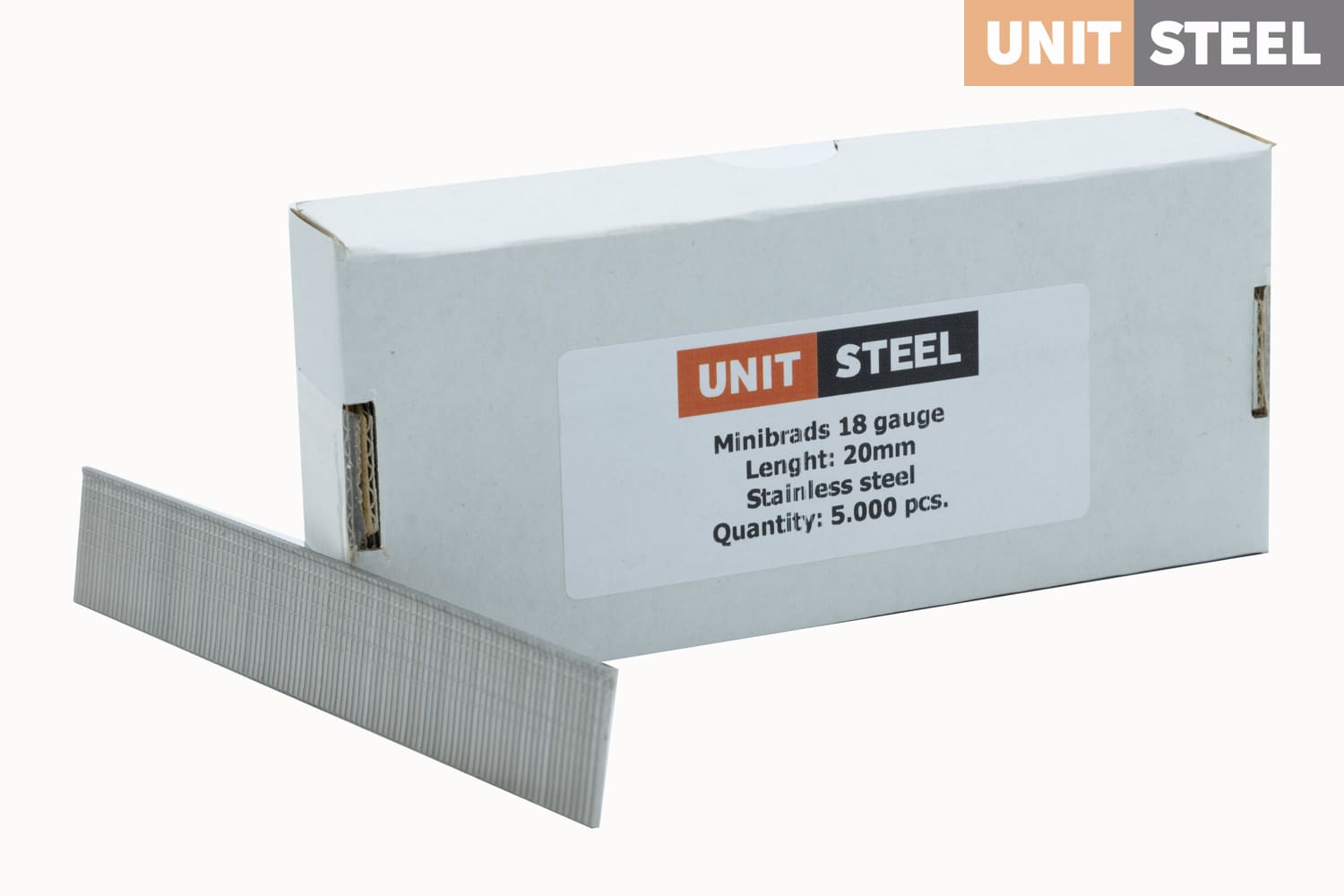 UnitSteel Minibrads 1,2X20mm RVS: Deze RVS UnitSteel Minibrads van 1,2x20mm zijn perfect geschikt voor buitengebruik. Met hun roestvrijstalen constructie bieden ze duurzaamheid en weerstand tegen corrosie, waardoor ze ideaal zijn voor langdurig gebruik in verschillende buitenprojecten. Deze minibrads kunnen worden gebruikt voor toepassingen zoals gevelbekleding, afwerking van terrasplanken en decoratieve houtbewerking in buitenruimtes.