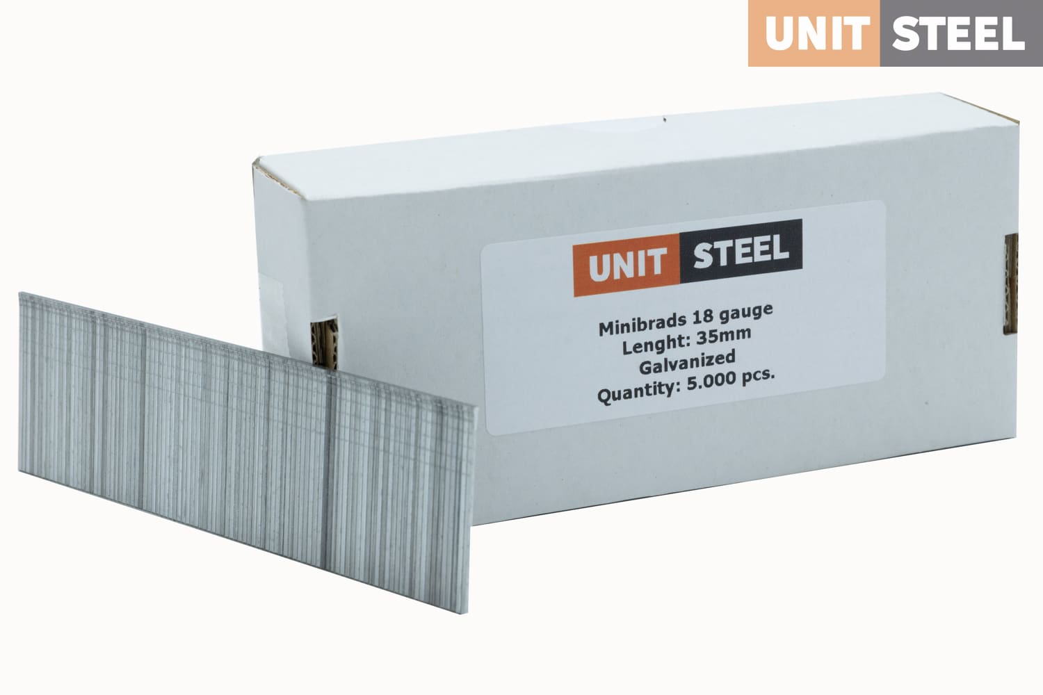 UnitSteel Minibrads 1,2X35mm Gegalvaniseerd: Deze gegalvaniseerde Minibrads van UnitSteel, met een lengte van 35mm, bieden stevige bevestiging voor het afwerken van glaslatten, aftimmerwerkzaamheden en andere houtbewerkingstoepassingen waar een langere lengte vereist is. Ze zijn de meest gebruikte afwerknagels in de afbouw- en interieurbouwsector. Kies voor deze duurzame bevestigingsoplossing voor betrouwbare en nauwkeurige verbindingen.