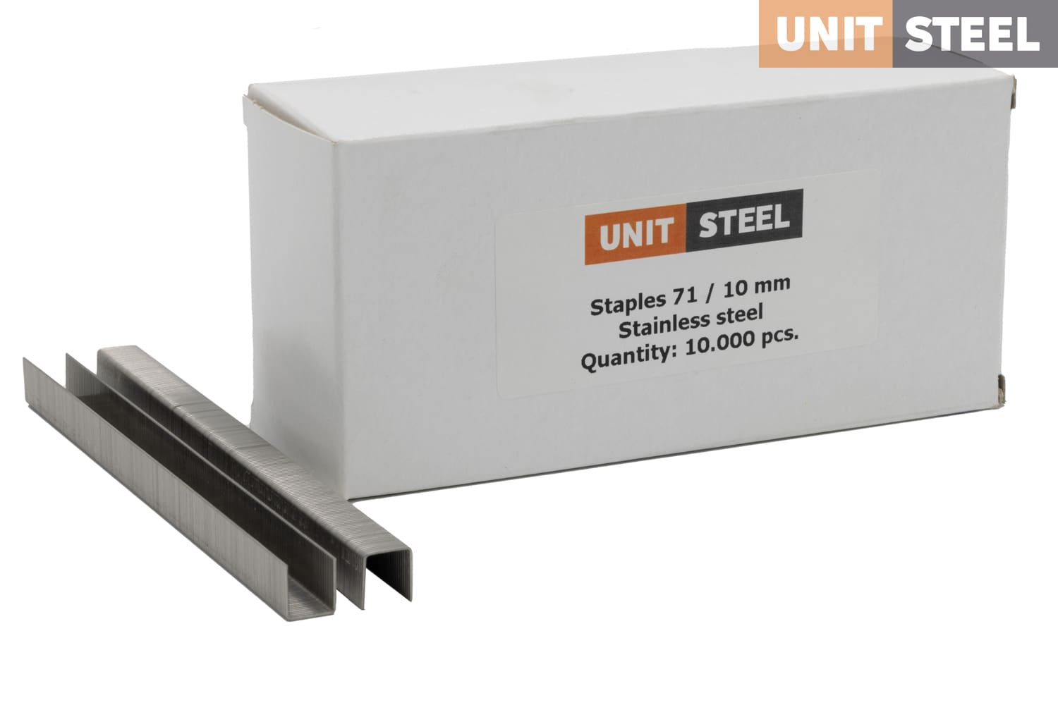 UnitSteel Nieten 71 10mm RVS: Met een lengte van 10mm bieden deze RVS UnitSteel Nieten een sterke bevestigingsoplossing voor diverse buitentoepassingen. Gebruik ze bijvoorbeeld voor het bevestigen van plinten, lijsten, isolatiemateriaal of andere materialen in buitenwerkzaamheden. Dankzij hun RVS-constructie zijn ze bestand tegen roestvorming en speciaal ontworpen om langdurig en betrouwbaar te presteren, zelfs in buitenomgevingen met wisselende weersomstandigheden. Vertrouw op de kwaliteit en duurzaamheid van deze nieten voor een solide verbinding in buitenprojecten.