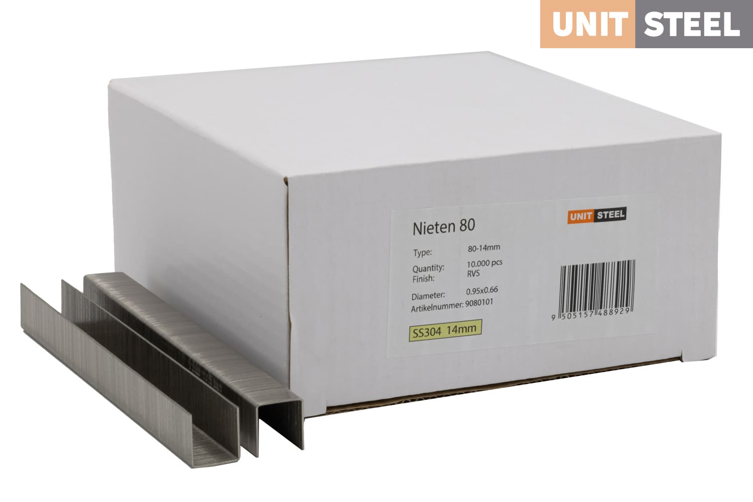 De nieten type 80 van Unitsteel zijn nieten met een draaddikte van 0,95×0,66 mm en een rugbreedte van 12,85 mm. Ze zijn een alternatief voor de Senco AT, Haubold KL800 of Bostitch 80-serie nieten. Ze worden o.a gebruikt voor het vastzetten van bekleding, dakdoek en de meubel productie. De nieten zijn verkrijgbaar in de lengtes 4mm tm 22mm en zowel gegalvaniseerd en RVS.