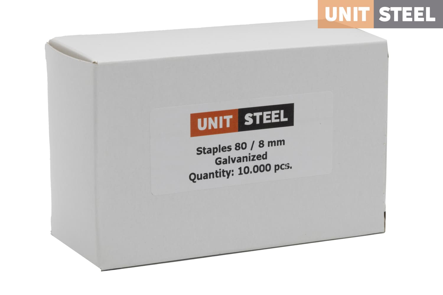 De nieten type 80 van Unitsteel zijn nieten met een draaddikte van 0,95×0,66 mm en een rugbreedte van 12,85 mm. Ze zijn een alternatief voor de Senco AT, Haubold KL800 of Bostitch 80-serie nieten. Ze worden o.a gebruikt voor het vastzetten van bekleding, dakdoek en de meubel productie. De nieten zijn verkrijgbaar in de lengtes 4mm tm 22mm en zowel gegalvaniseerd en RVS.