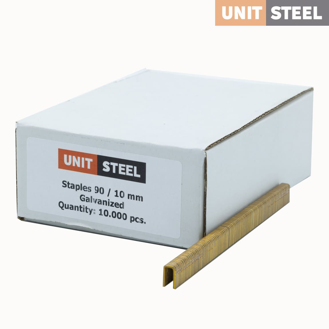 De nieten type 90 van Unitsteel zijn universele nieten die geschikt zijn voor tackers van diverse merken. Ze hebben een draaddikte van 1,25×1,0mm en een rugbreedte van 5,55. De nieten zijn geschikt voor verschillende toepassingen zoals raggelwerk, meubels, kasten, bedden en andere betimmeringen. De nieten en zijn verkrijgbaar in de lengtes 15mm tm 40mm en in zowel gegalvaniseerd staal als RVS