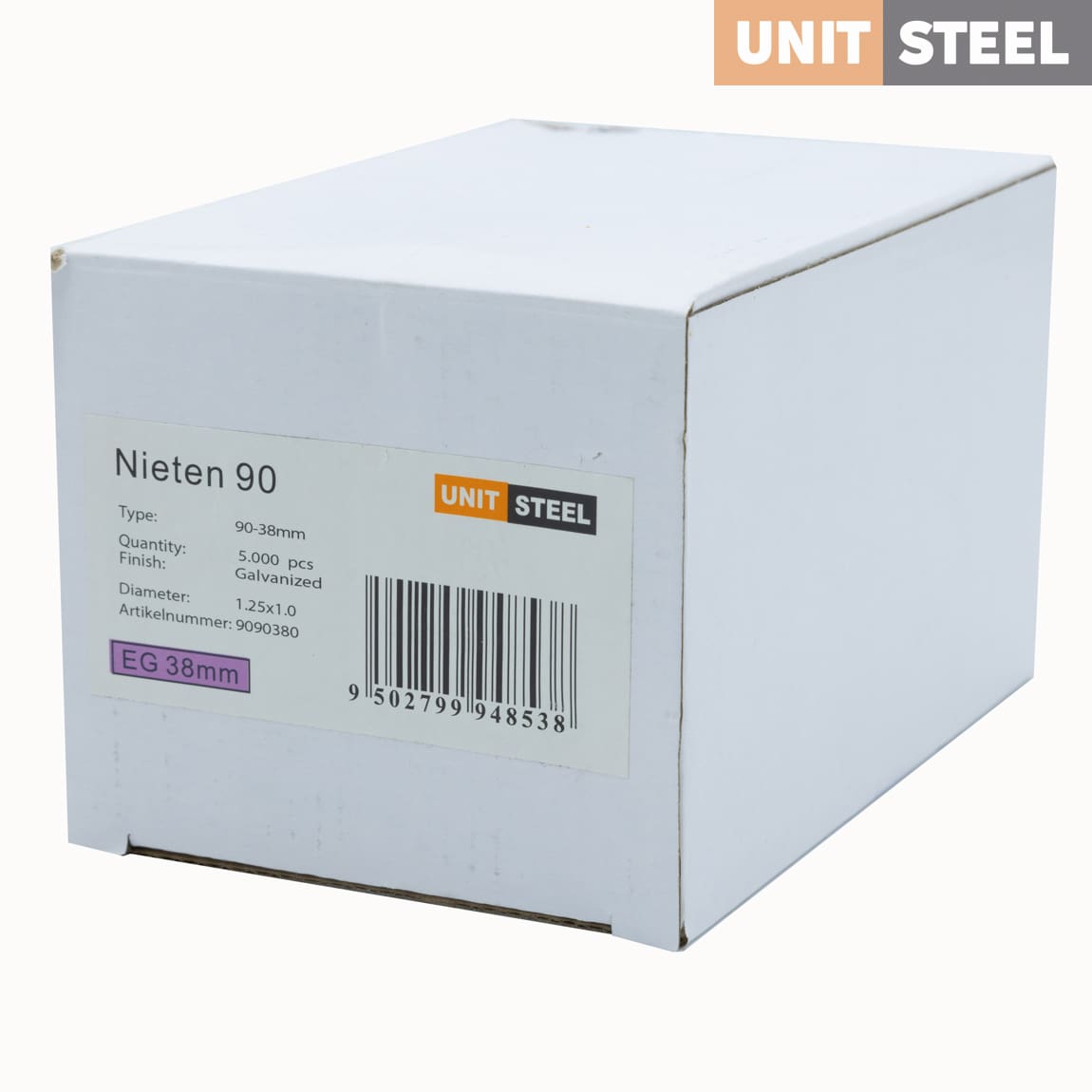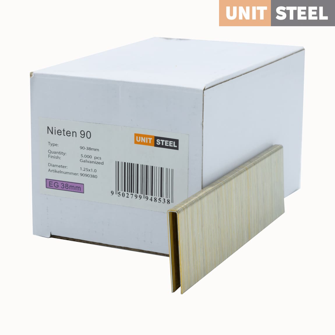 UnitSteel Nieten 90 38mm Gegalvaniseerd: In de betimmerings-, meubel- en lattenbodemindustrie zijn deze 38mm gegalvaniseerde UnitSteel nieten onmisbaar. Ze bieden precisie en duurzaamheid. Vertrouw op deze nieten voor professioneel vakmanschap. Als je twijfels hebt over de compatibiliteit met je tacker, neem dan gerust contact op voor advies.