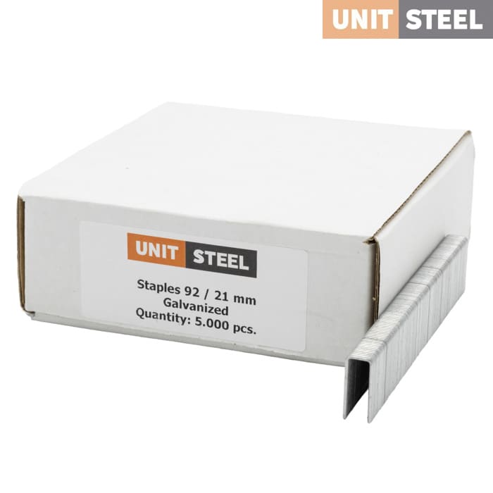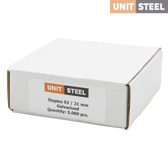 UnitSteel Nieten 92 21mm Gegalvaniseerd: Deze 21mm gegalvaniseerde UnitSteel nieten 92 zijn perfect voor houtbewerking, meubelmontage en lattenbodems. Ze bieden een betrouwbare bevestiging zonder gedoe. De gegalvaniseerde afwerking zorgt voor duurzaamheid en langdurige prestaties. Bestel vandaag nog en maak je werk gemakkelijker.