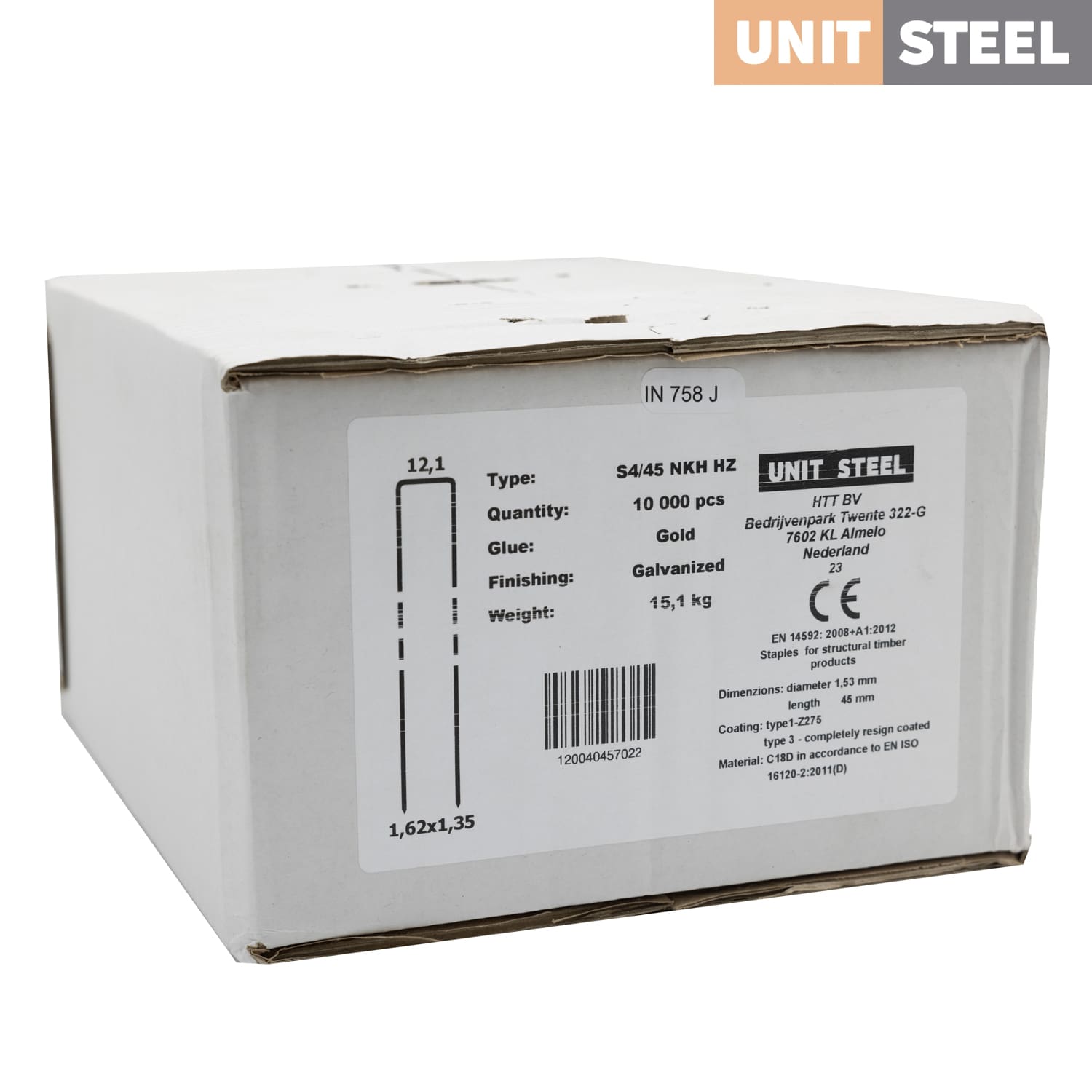 UnitSteel Nieten S4/16NC 45mm Gegalvaniseerd 10.000 stuks