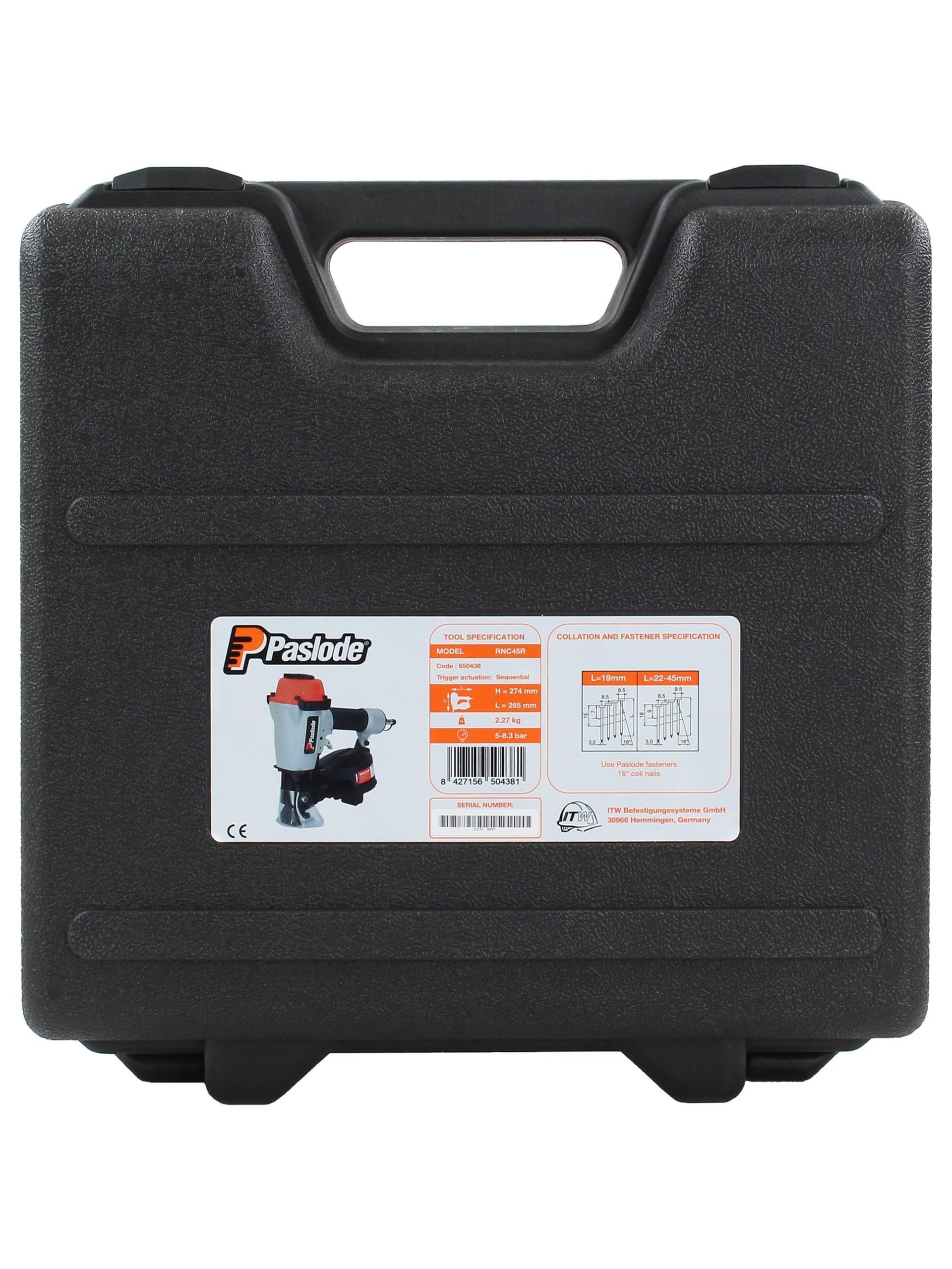 De RNC45R is een kwalitatief hoogwaardige asfaltnagel tacker. Deze Paslode tacker verwerkt asfaltnagels van 19mm tot 45mm.
