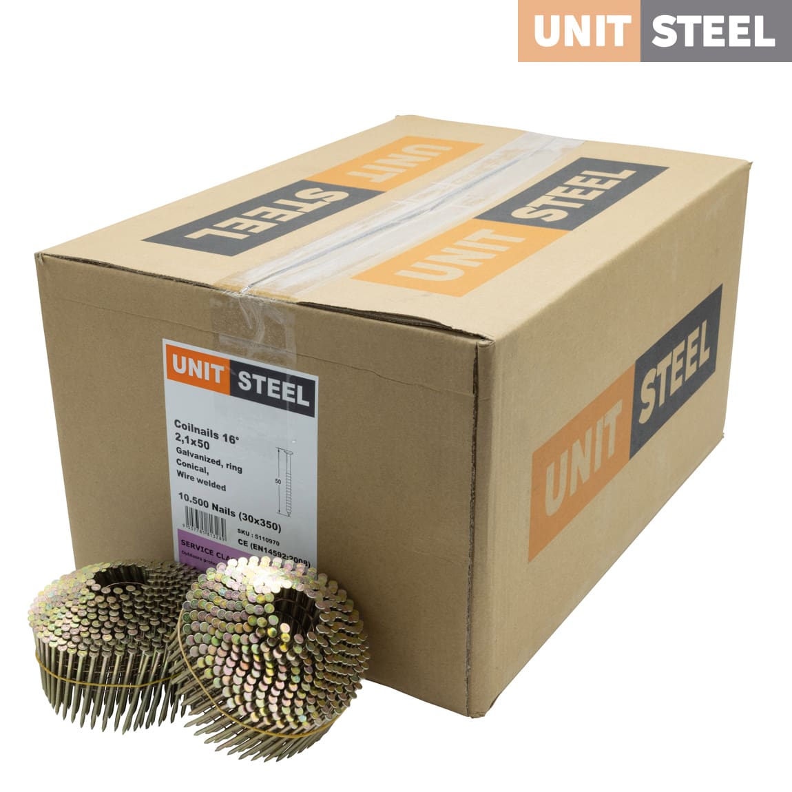 UnitSteel Ringnagels 2,1X50mm Geringd / Gegalvaniseerd: Voor sterke en duurzame bevestigingen zijn de UnitSteel Ringnagels 2,1X50mm de ideale keuze. Deze gegalvaniseerde nagels bieden bescherming tegen corrosie en zorgen voor langdurige prestaties. Hun geringde vorm zorgt voor een stevige grip en voorkomt dat de nagels losraken. Met een lengte van 50mm zijn ze geschikt voor diverse toepassingen. Vertrouw op de kwaliteit en betrouwbaarheid van de UnitSteel Ringnagels 2,1X50mm voor een perfecte afwerking van uw projecten. Voor eventuele vragen staan wij altijd voor u klaar.