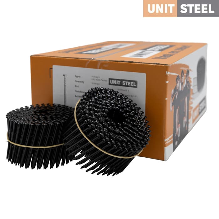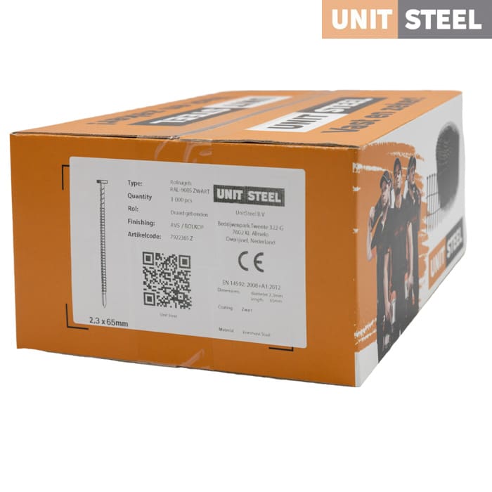 UnitSteel Ringnagels 2,3X65mm Geringd / RVS / Bolkop / Zwart: Creëer een stijlvolle en duurzame afwerking met de UnitSteel Ringnagels 2,3X65mm in zwart, met RVS en bolkop. Deze nagels bieden duurzaamheid, betrouwbaarheid en een strakke uitstraling. Met hun geringde vorm zorgen ze voor een stevige grip en voorkomen ze dat de nagels losraken. Door hun lengte van 65mm zijn ze geschikt voor diverse toepassingen. Kies voor de UnitSteel Ringnagels 2,3X65mm voor hoogwaardige afwerkingen met een vleugje stijl en een solide constructie. Bij vragen over de compatibiliteit met uw tacker kunt u altijd contact met ons opnemen.