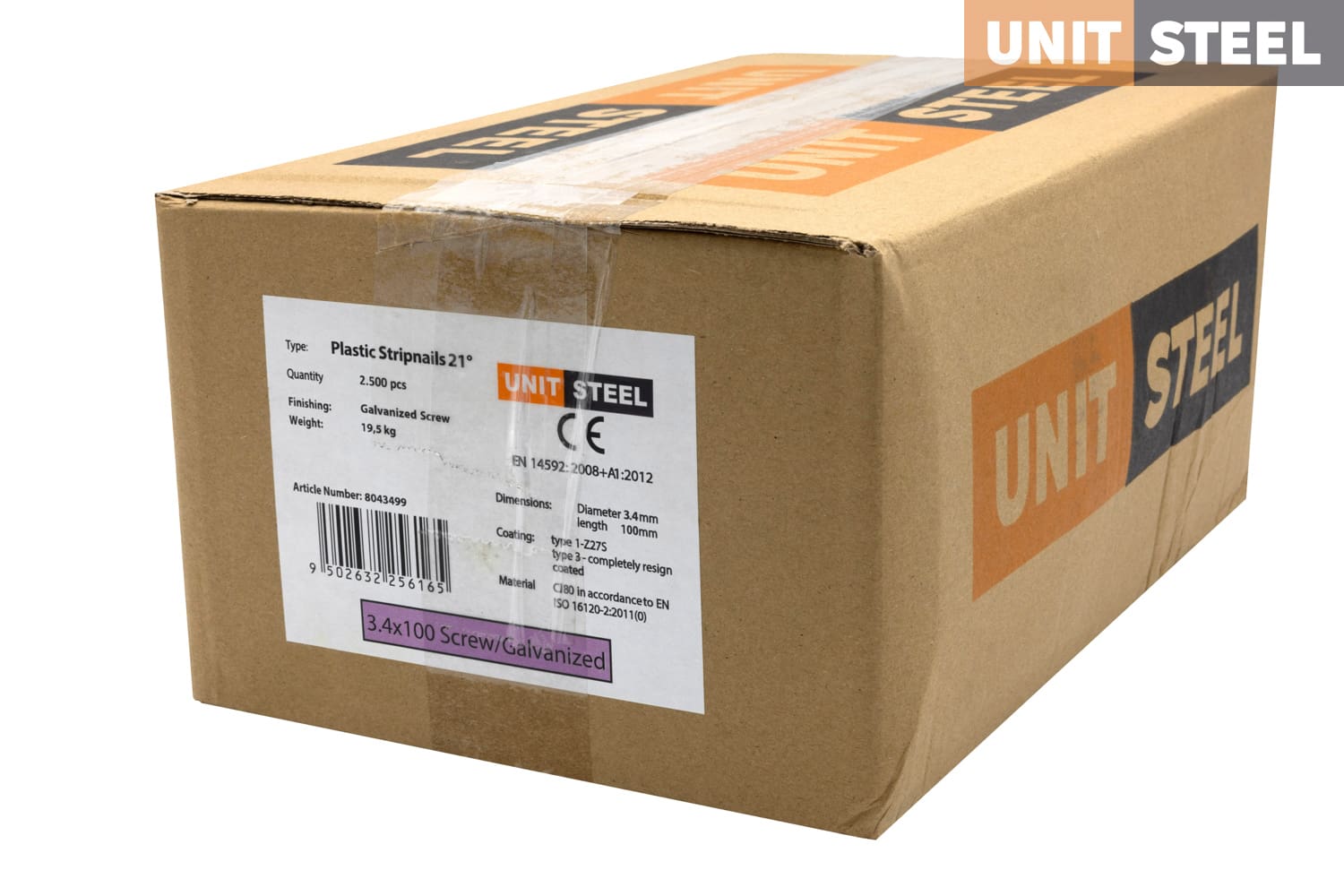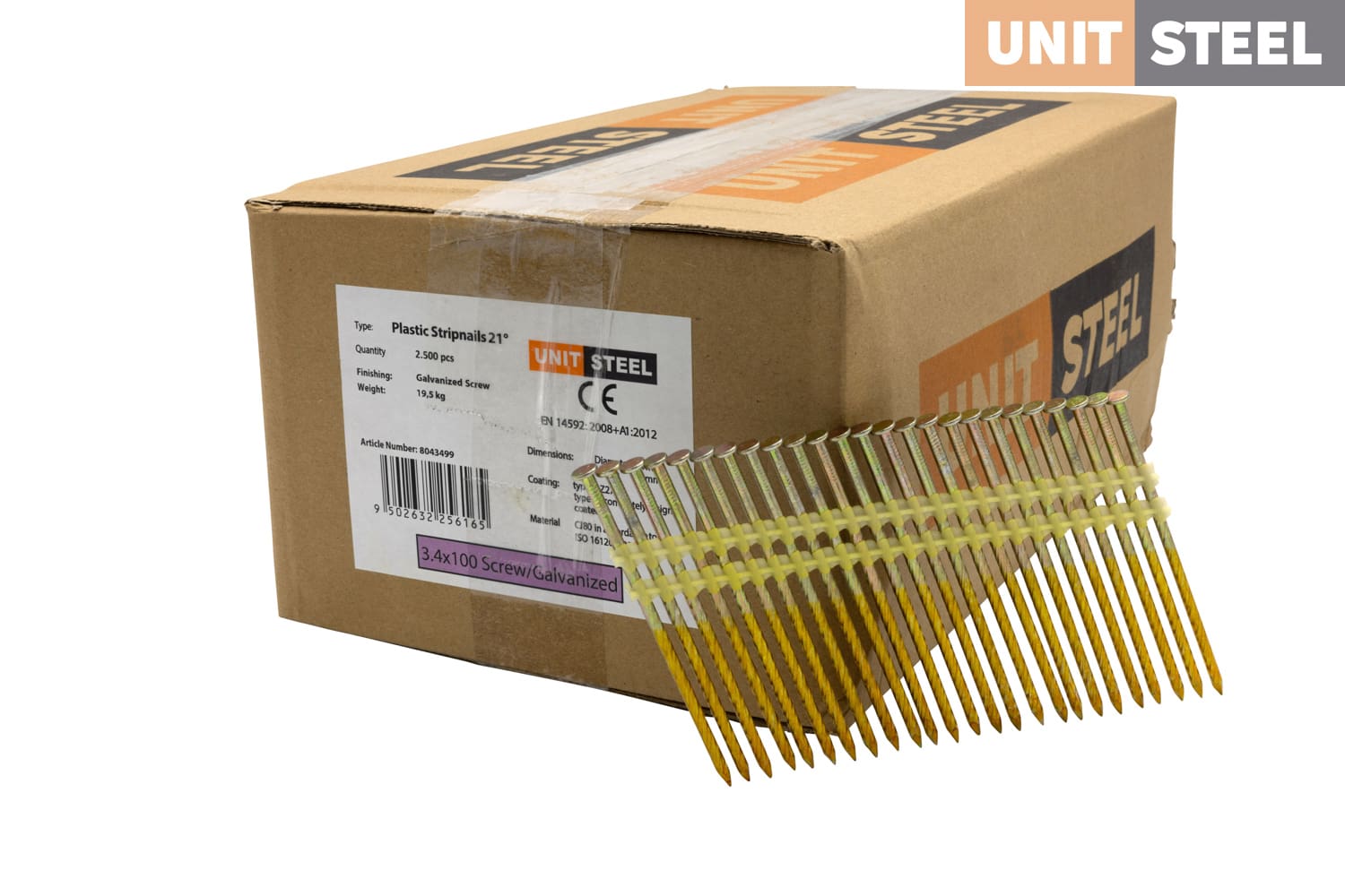 UnitSteel 21º Rk nagels 3,4X100mm Gegalvaniseerd/Geschroefd 2.500 stuks