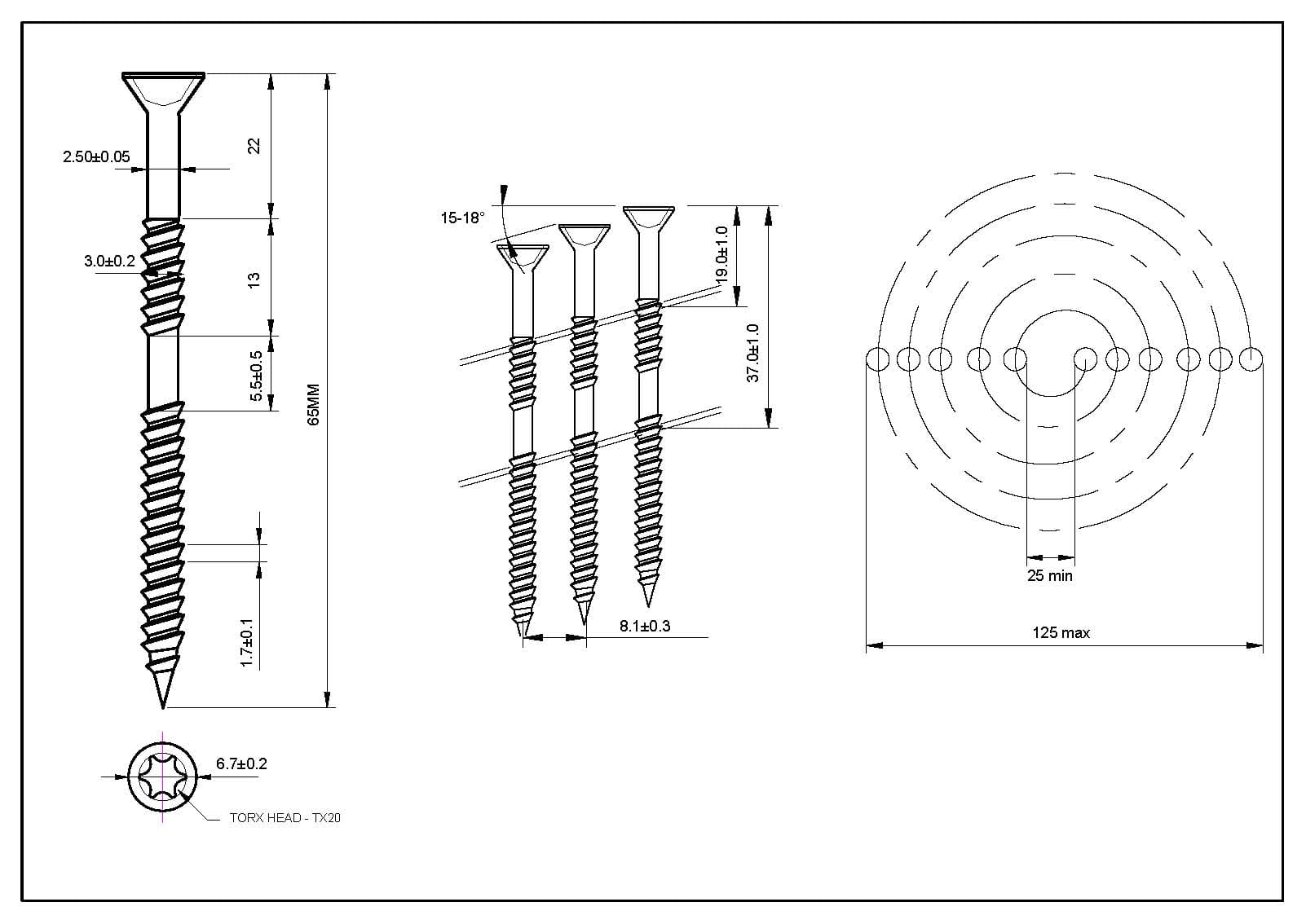 UnitSteel Schietschroeven 2,5x65MM TX20 Gegalvaniseerd