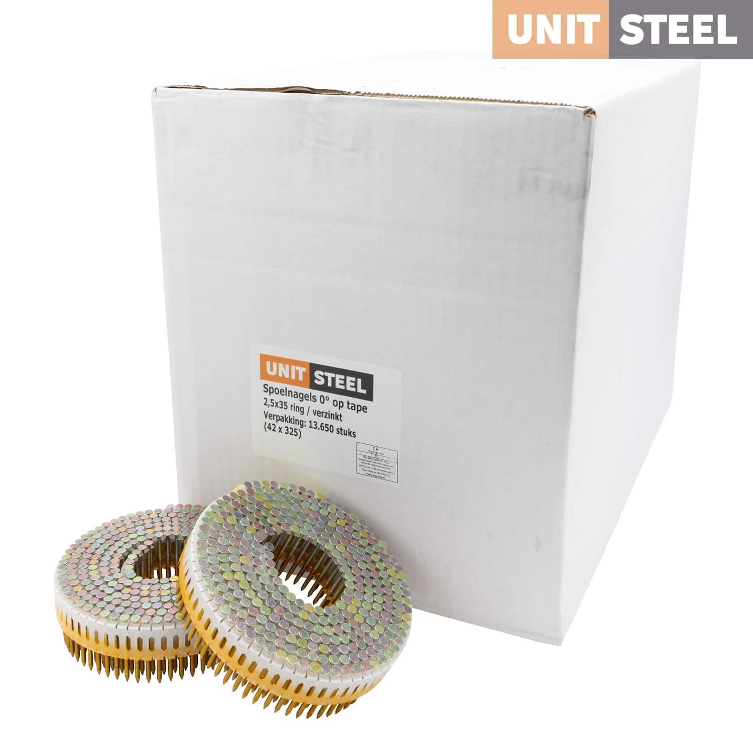 Deze spoelnagels van UnitSteel met een diameter van 2,5mm en ringvormige structuur zijn speciaal ontworpen voor gebruik met tackers van onder andere DuoFast en Paslode. De plastic binding zorgt voor een nettere afwerking van de bevestiging. Gebruik deze spoelnagels voor diverse toepassingen zoals vloerconstructies, dakbedekking, wandbekleding en meer. Bij vragen staan wij altijd voor u klaar.