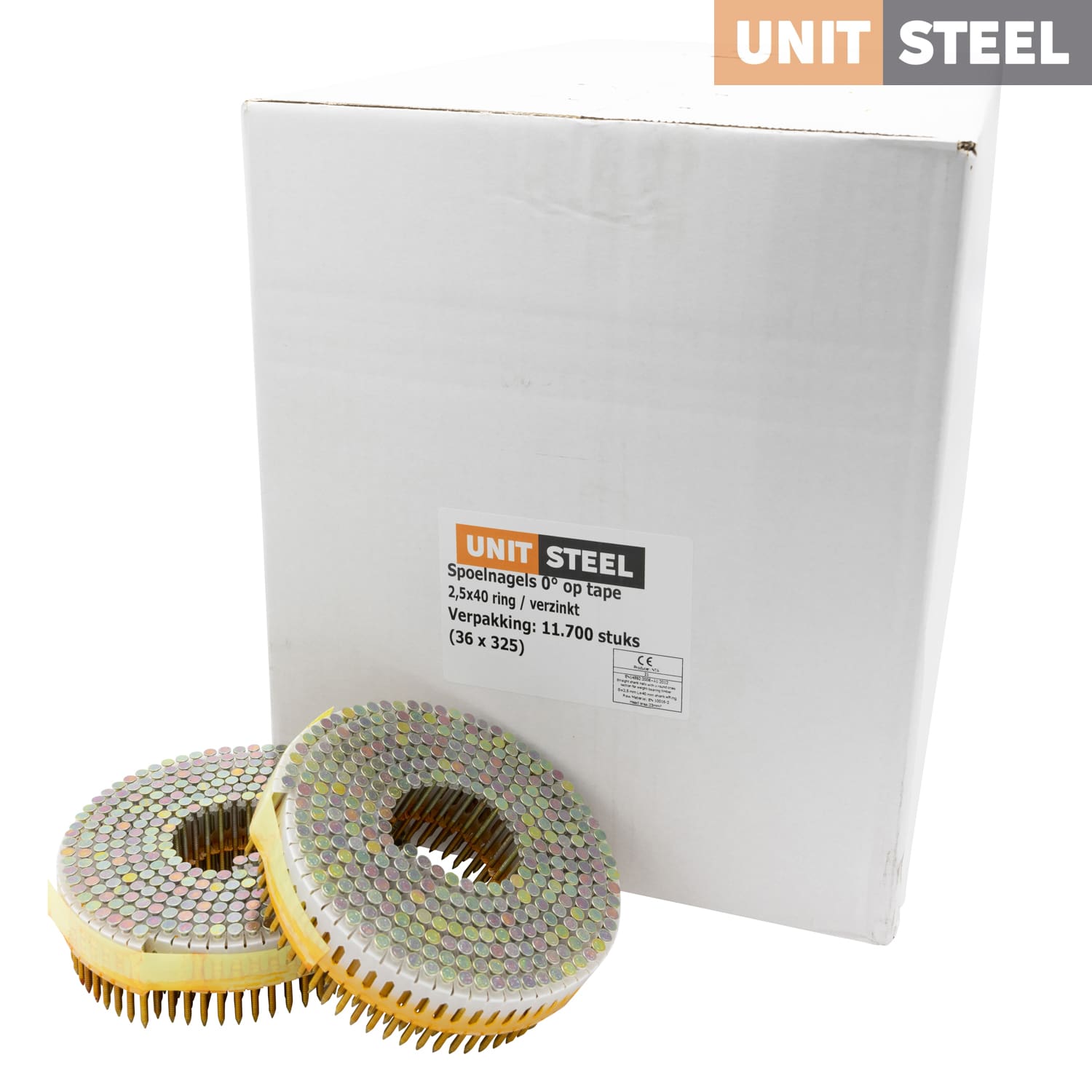 De Unitsteel Spoelnagels zijn plastic gebonden spijkers op een rol. Ze zijn geschikt voor diverse soorten werkzaamheden. Denk bijvoorbeeld aan muur, plafond en dak beplating en gipsplaat bevestigingen. Het zijn universele nagels de compatibel zijn met tackers van verschillende merken. Er zijn veel verschillende soorten spoelnagels. Ze zijn beschikbaar in lengtes van 27 tm 75mm en naast de lengte zit er ook een verschil in dikte van de spijkers. De diktes variëren tussen de 2,1mm en 2,5mm. Naast de verschillende afmetingen zijn de spoelnagels verkrijgbaar in gegalvaniseerd staal, RVS en gewoon staal.