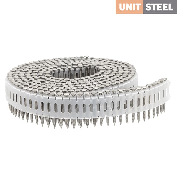 De Unitsteel Spoelnagels zijn plastic gebonden spijkers op een rol. Ze zijn geschikt voor diverse soorten werkzaamheden. Denk bijvoorbeeld aan muur, plafond en dak beplating en gipsplaat bevestigingen. Het zijn universele nagels de compatibel zijn met tackers van verschillende merken. Er zijn veel verschillende soorten spoelnagels. Ze zijn beschikbaar in lengtes van 27 tm 75mm en naast de lengte zit er ook een verschil in dikte van de spijkers. De diktes variëren tussen de 2,1mm en 2,5mm. Naast de verschillende afmetingen zijn de spoelnagels verkrijgbaar in gegalvaniseerd staal, RVS en gewoon staal.