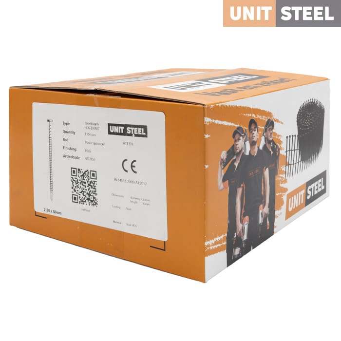 De Unitsteel Spoelnagels zijn plastic gebonden spijkers op een rol. Ze zijn geschikt voor diverse soorten werkzaamheden. Denk bijvoorbeeld aan muur, plafond en dak beplating en gipsplaat bevestigingen. Het zijn universele nagels de compatibel zijn met tackers van verschillende merken. Er zijn veel verschillende soorten spoelnagels. Ze zijn beschikbaar in lengtes van 27 tm 75mm en naast de lengte zit er ook een verschil in dikte van de spijkers. De diktes variëren tussen de 2,1mm en 2,5mm. Naast de verschillende afmetingen zijn de spoelnagels verkrijgbaar in gegalvaniseerd staal, RVS en gewoon staal.