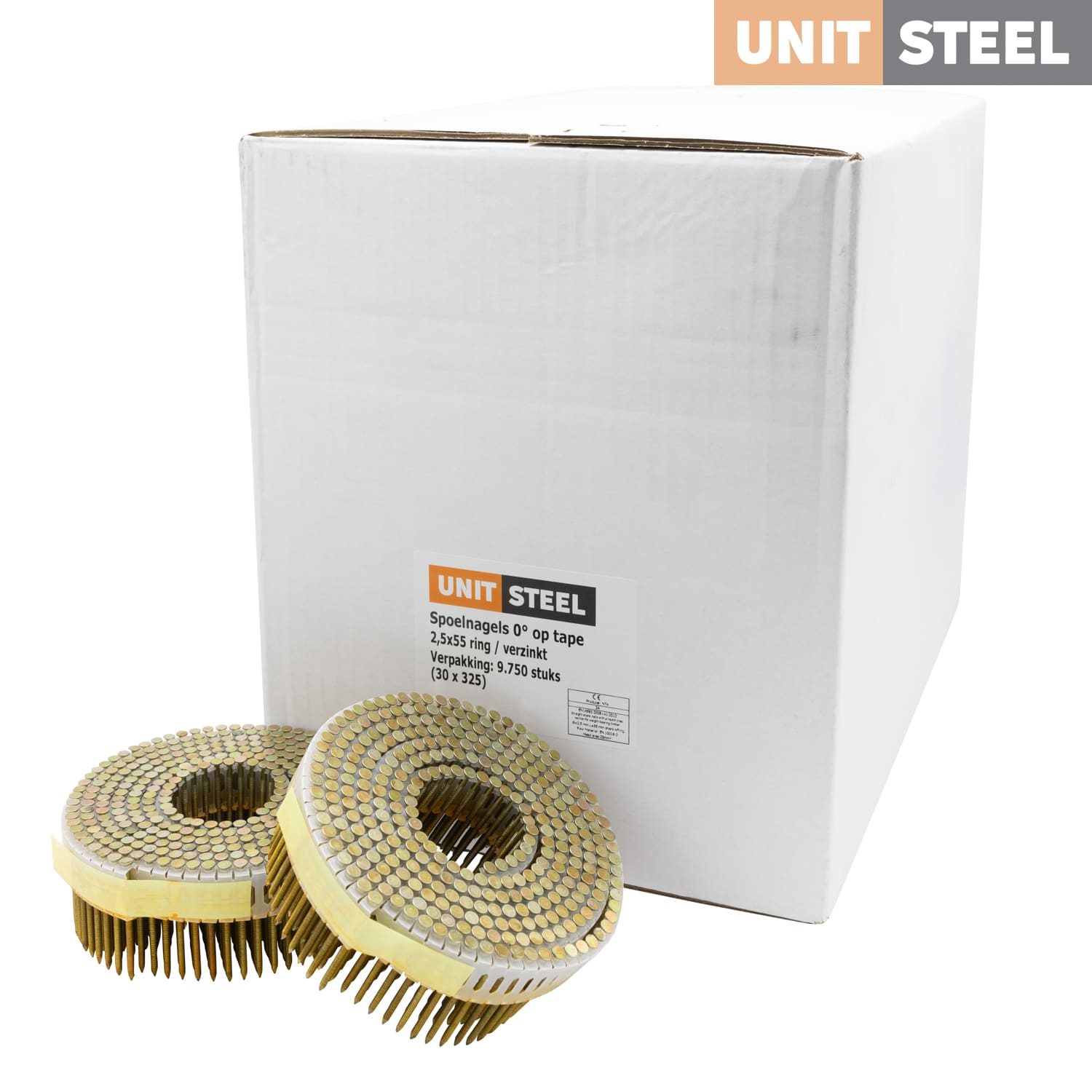 De Unitsteel Spoelnagels zijn plastic gebonden spijkers op een rol. Ze zijn geschikt voor diverse soorten werkzaamheden. Denk bijvoorbeeld aan muur, plafond en dak beplating en gipsplaat bevestigingen. Het zijn universele nagels de compatibel zijn met tackers van verschillende merken. Er zijn veel verschillende soorten spoelnagels. Ze zijn beschikbaar in lengtes van 27 tm 75mm en naast de lengte zit er ook een verschil in dikte van de spijkers. De diktes variëren tussen de 2,1mm en 2,5mm. Naast de verschillende afmetingen zijn de spoelnagels verkrijgbaar in gegalvaniseerd staal, RVS en gewoon staal.