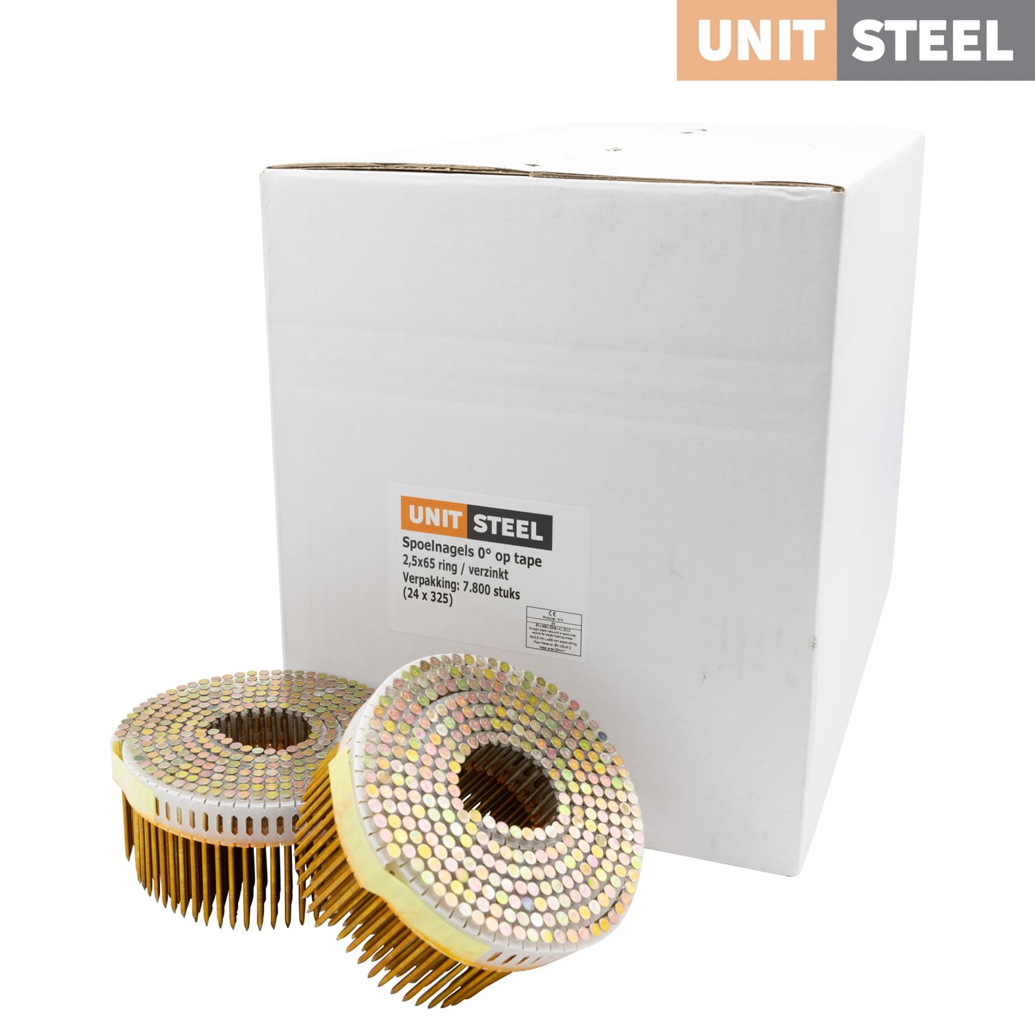 De Unitsteel Spoelnagels zijn plastic gebonden spijkers op een rol. Ze zijn geschikt voor diverse soorten werkzaamheden. Denk bijvoorbeeld aan muur, plafond en dak beplating en gipsplaat bevestigingen. Het zijn universele nagels de compatibel zijn met tackers van verschillende merken. Er zijn veel verschillende soorten spoelnagels. Ze zijn beschikbaar in lengtes van 27 tm 75mm en naast de lengte zit er ook een verschil in dikte van de spijkers. De diktes variëren tussen de 2,1mm en 2,5mm. Naast de verschillende afmetingen zijn de spoelnagels verkrijgbaar in gegalvaniseerd staal, RVS en gewoon staal.