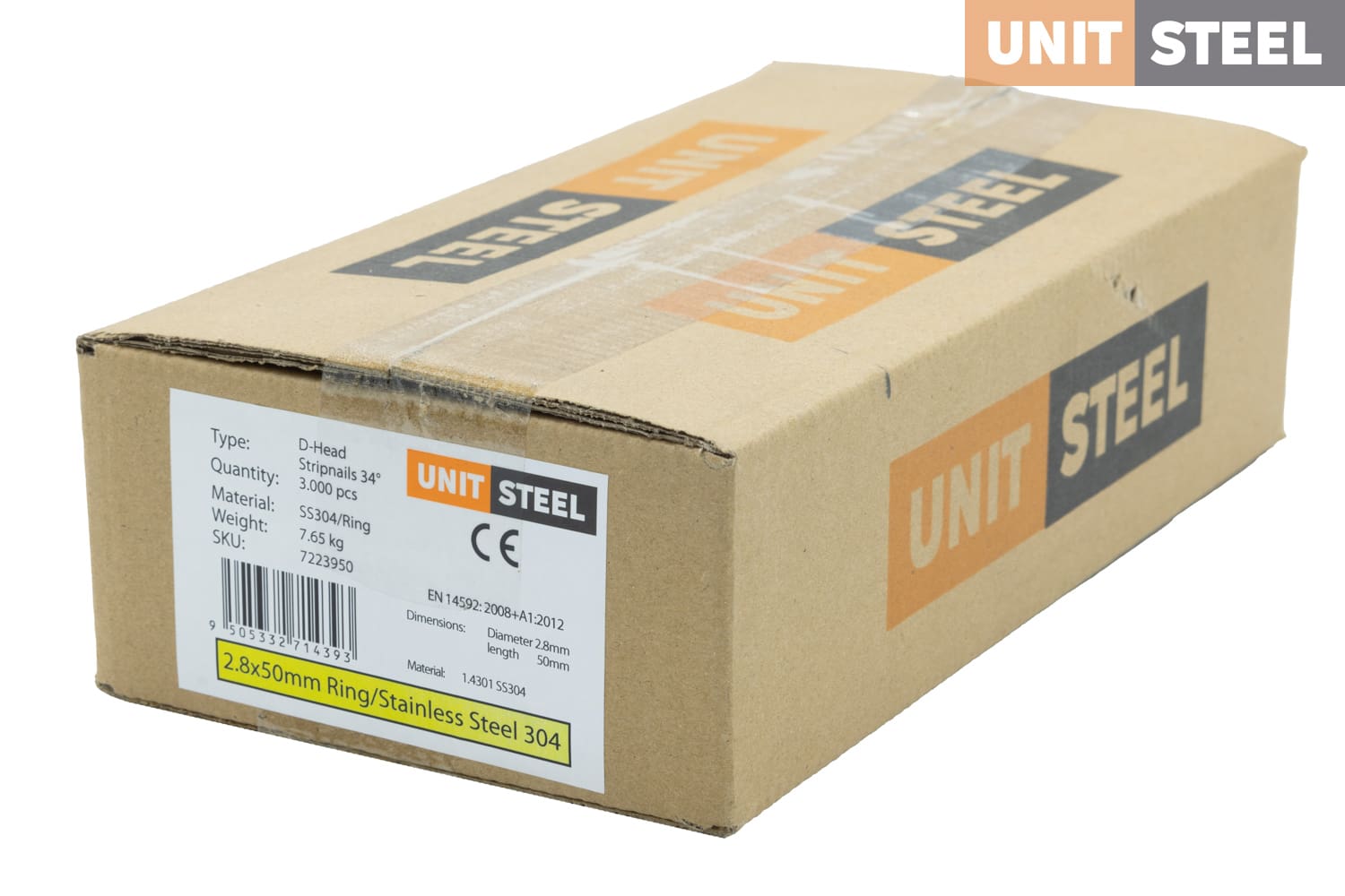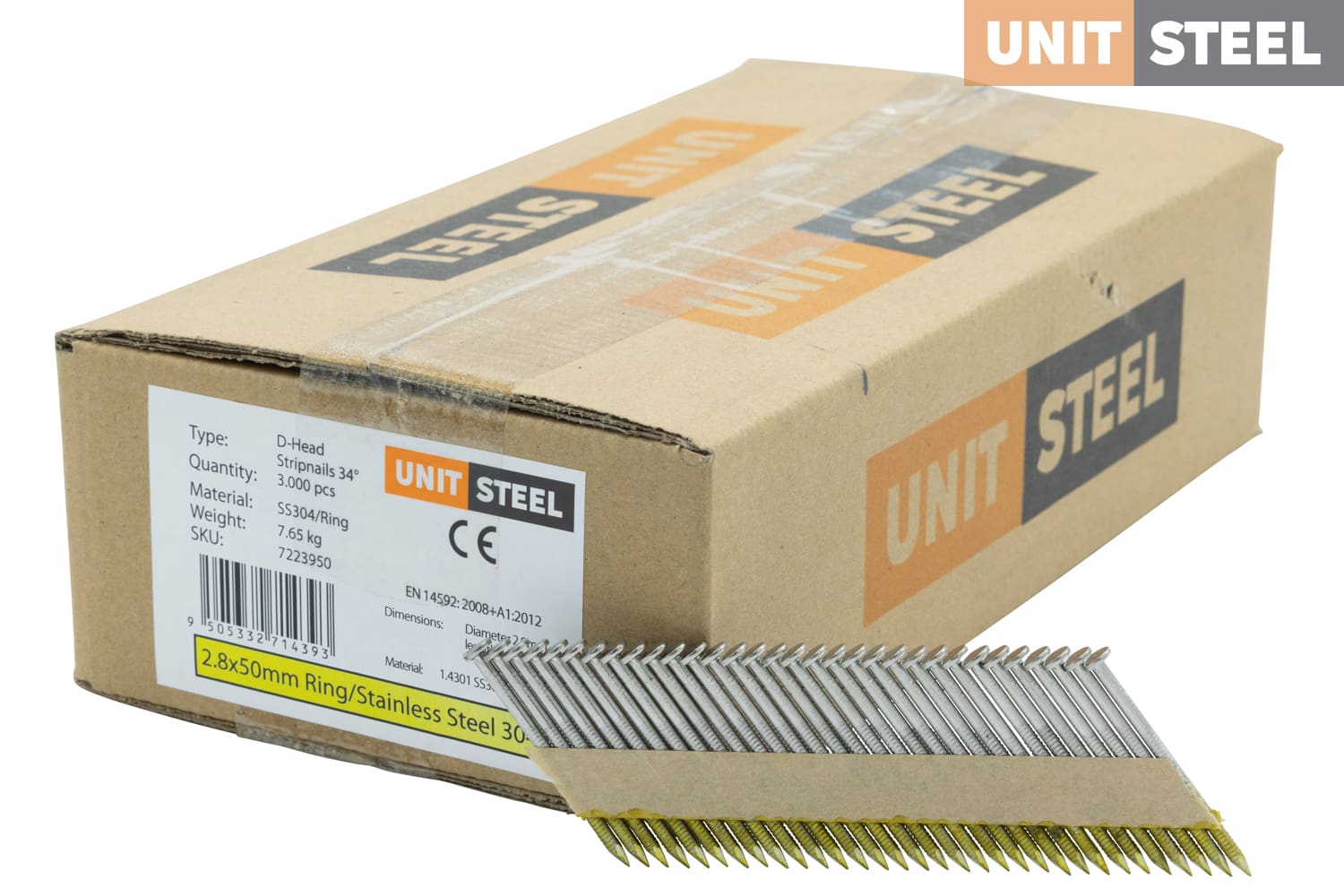 UnitSteel 34° Stripnagels D-KOP 2,8X50mm Ring/RVS 3.000 stuks