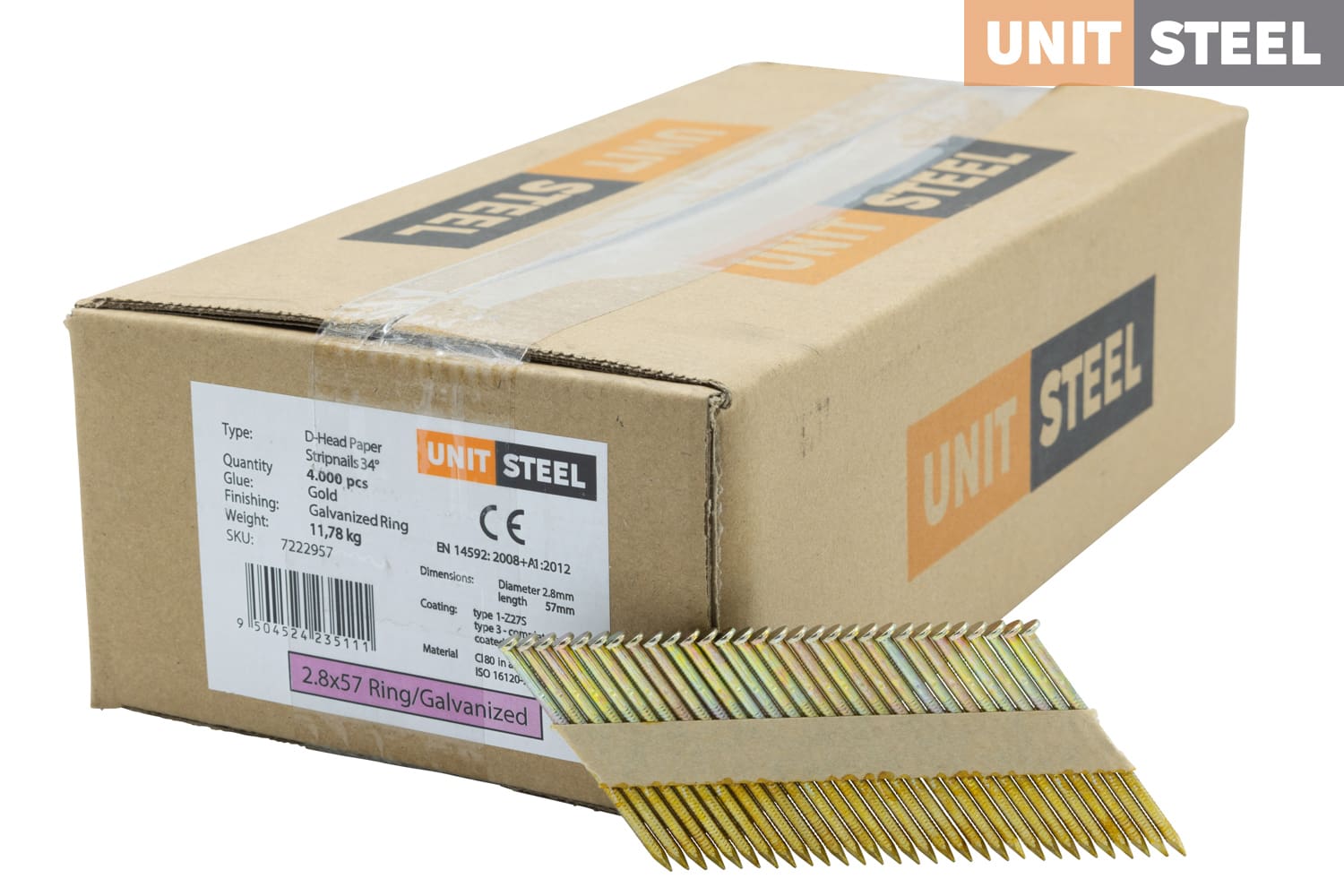 UnitSteel Stripnagels D-Kop 2,8×57 Ring/Gegalvaniseerd