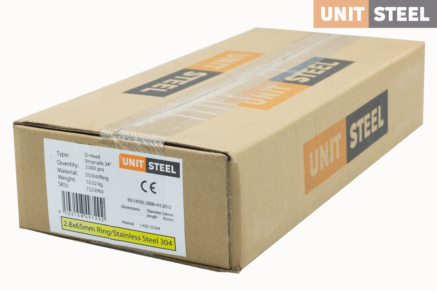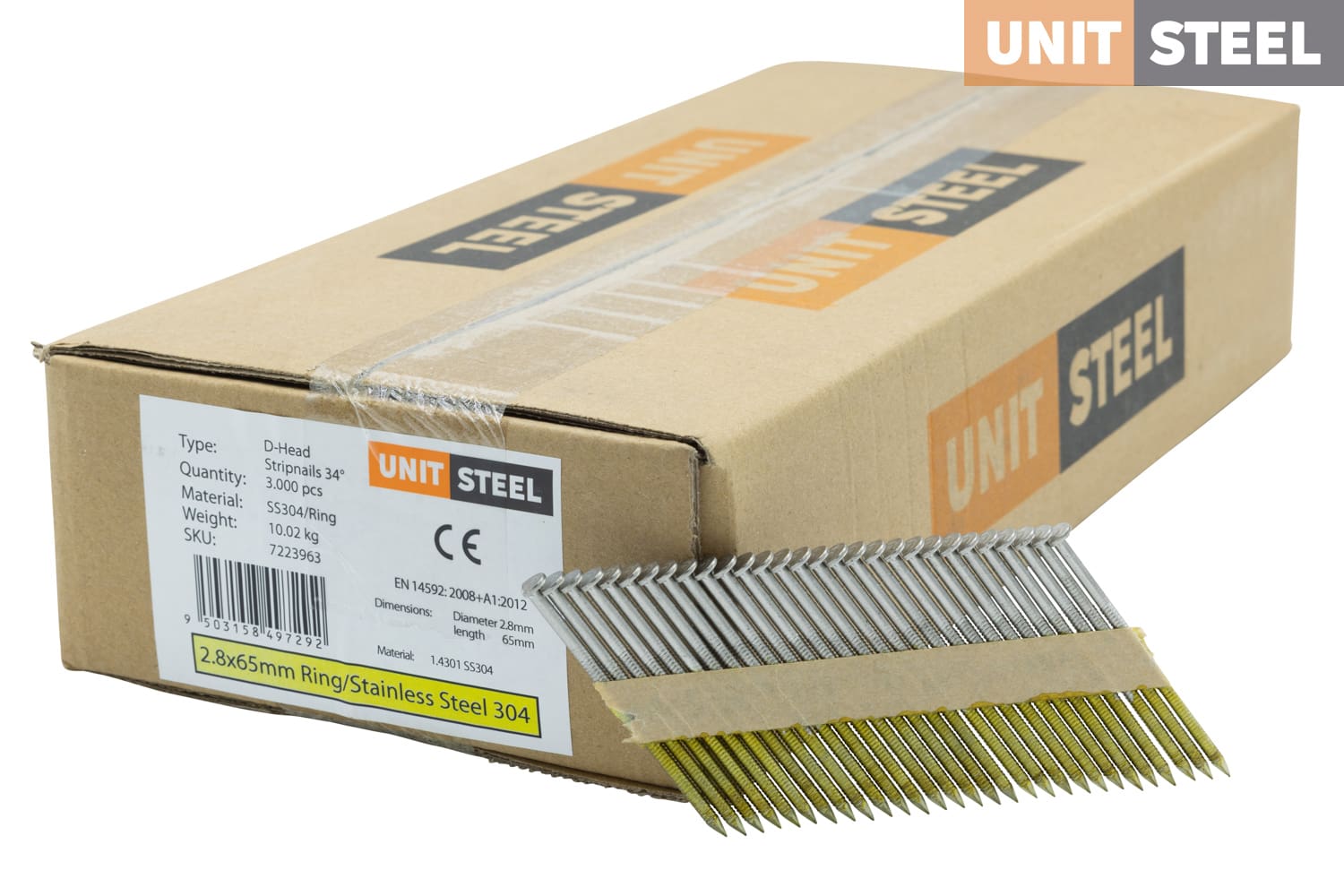 UnitSteel 34° Stripnagels D-KOP 2,8X65mm Ring/RVS 3.000 stuks