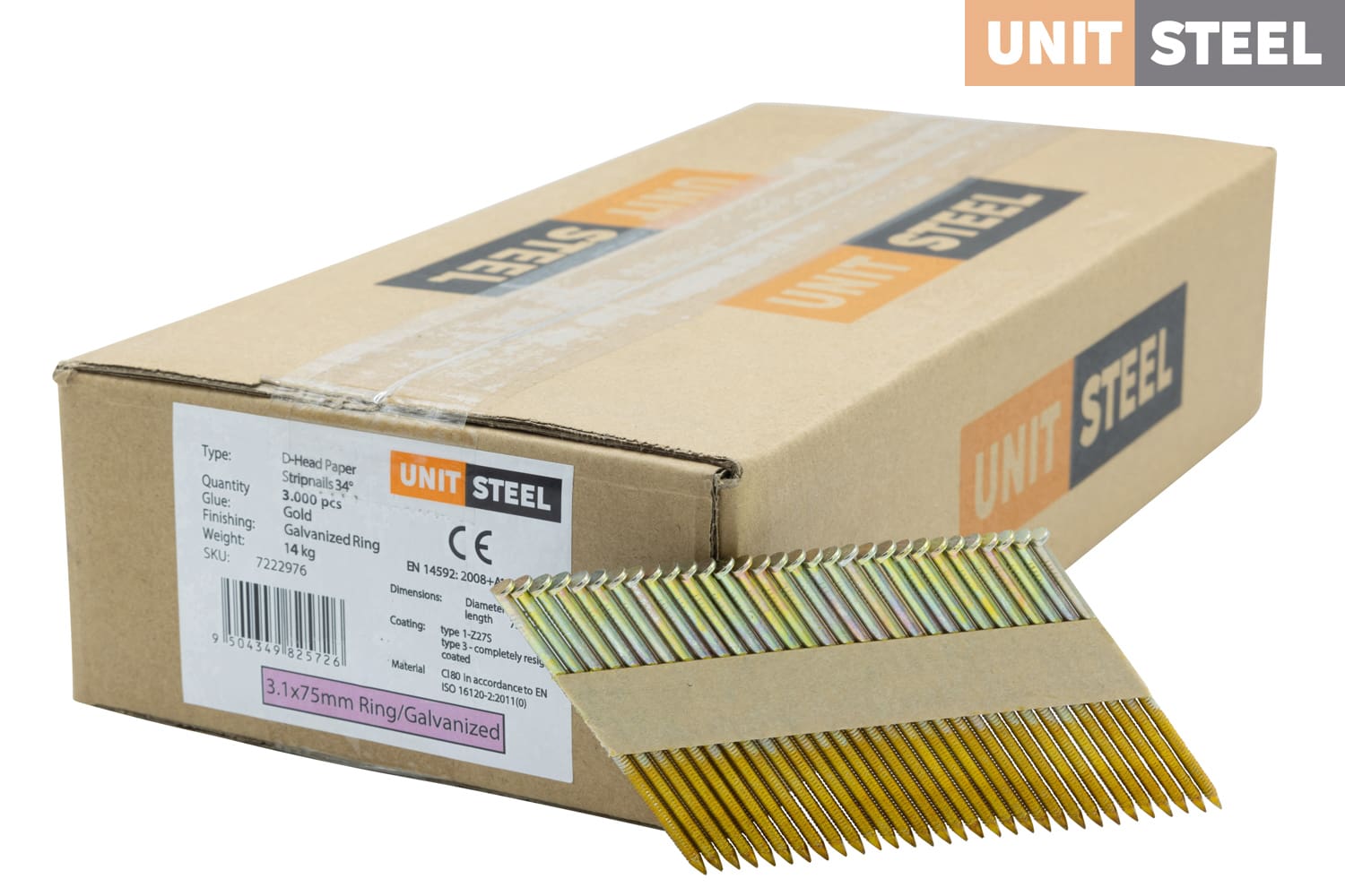 UnitSteel Stripnagels D-Kop 3,1×75 Ring/Gegalvaniseerd