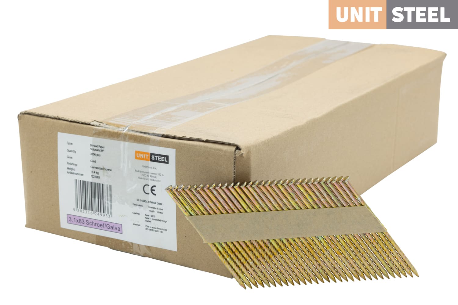 UnitSteel Stripnagels D-Kop 3,1×83 Schroef/Gegalvaniseerd