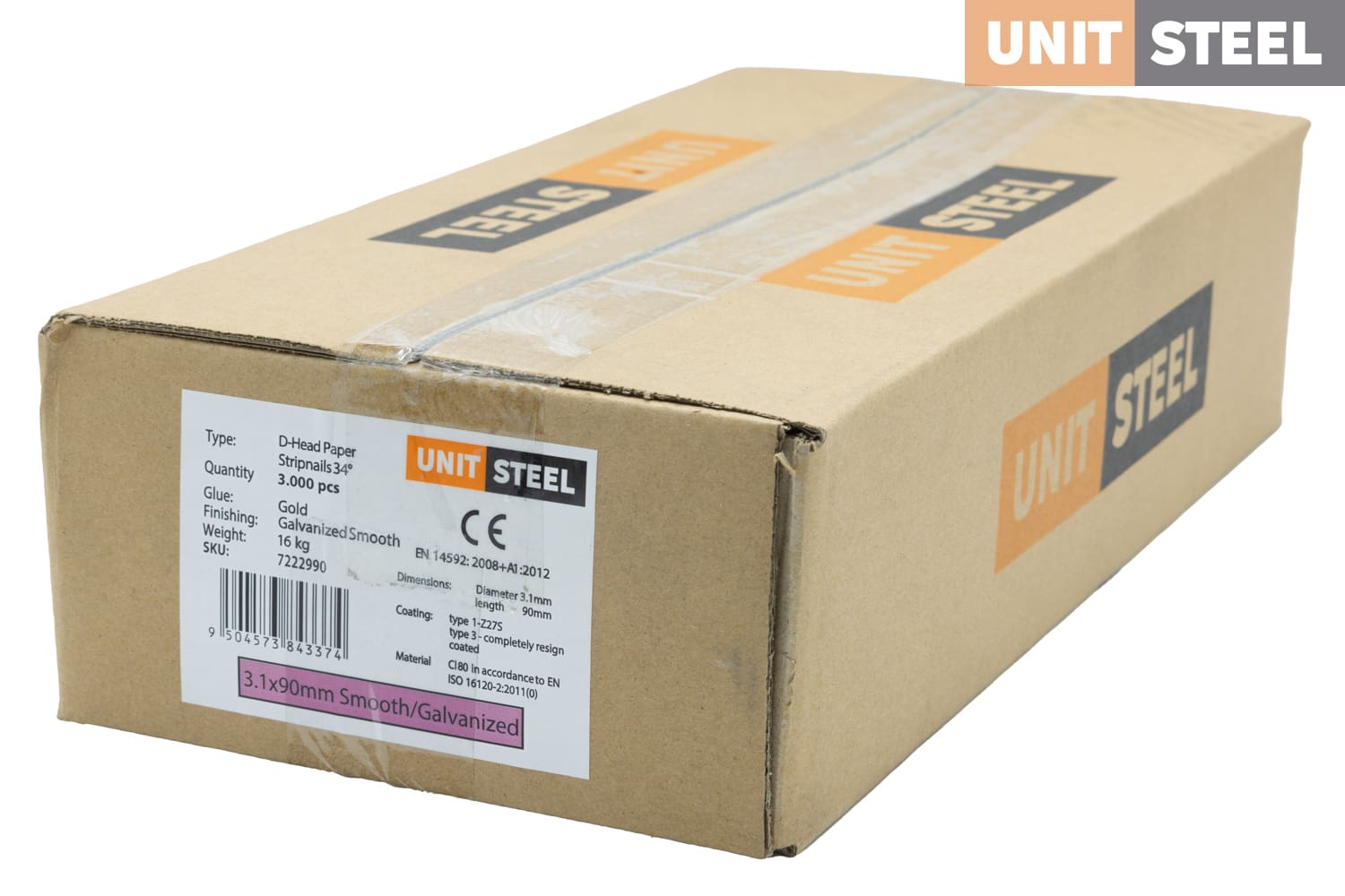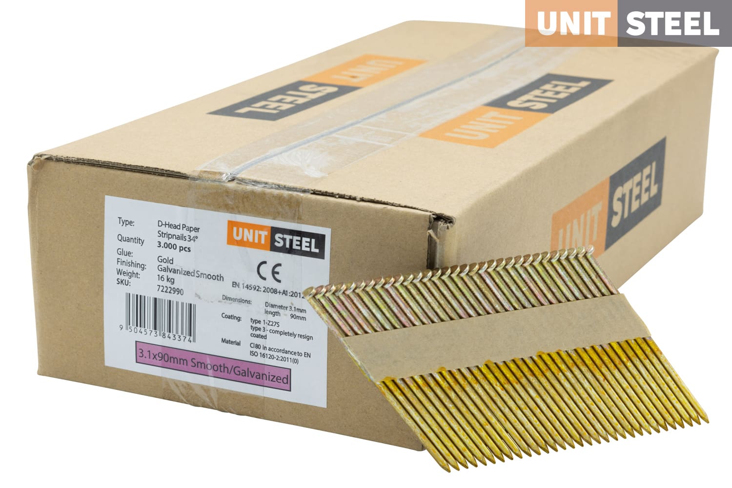 UnitSteel Stripnagels D-Kop 3,1×90 Glad/Gegalvaniseerd