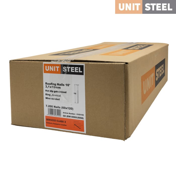 De UnitSteel Asfaltnagels van 19mm zijn de perfecte keuze voor het vastschieten van dakleer en dakshingles, maar ook voor het bevestigen van houten beplating en gevelbekleding. Dankzij hun gegalvaniseerde coating bieden deze nagels duurzame verbindingen die bestand zijn tegen verschillende weersomstandigheden. Of je nu werkt aan een dakrenovatieproject of gevelbekleding installeert, met deze nagels ben je verzekerd van een stevige en betrouwbare bevestiging. Voor vragen over het gebruik van deze hoogwaardige nagels staan we altijd ter beschikking.