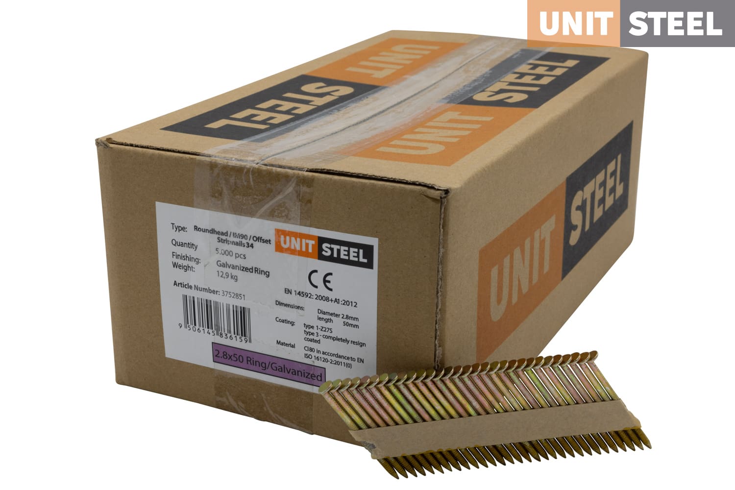 UnitSteel Stripnagels Rondkop 2,8x50mm Ring/Gegalvaniseerd