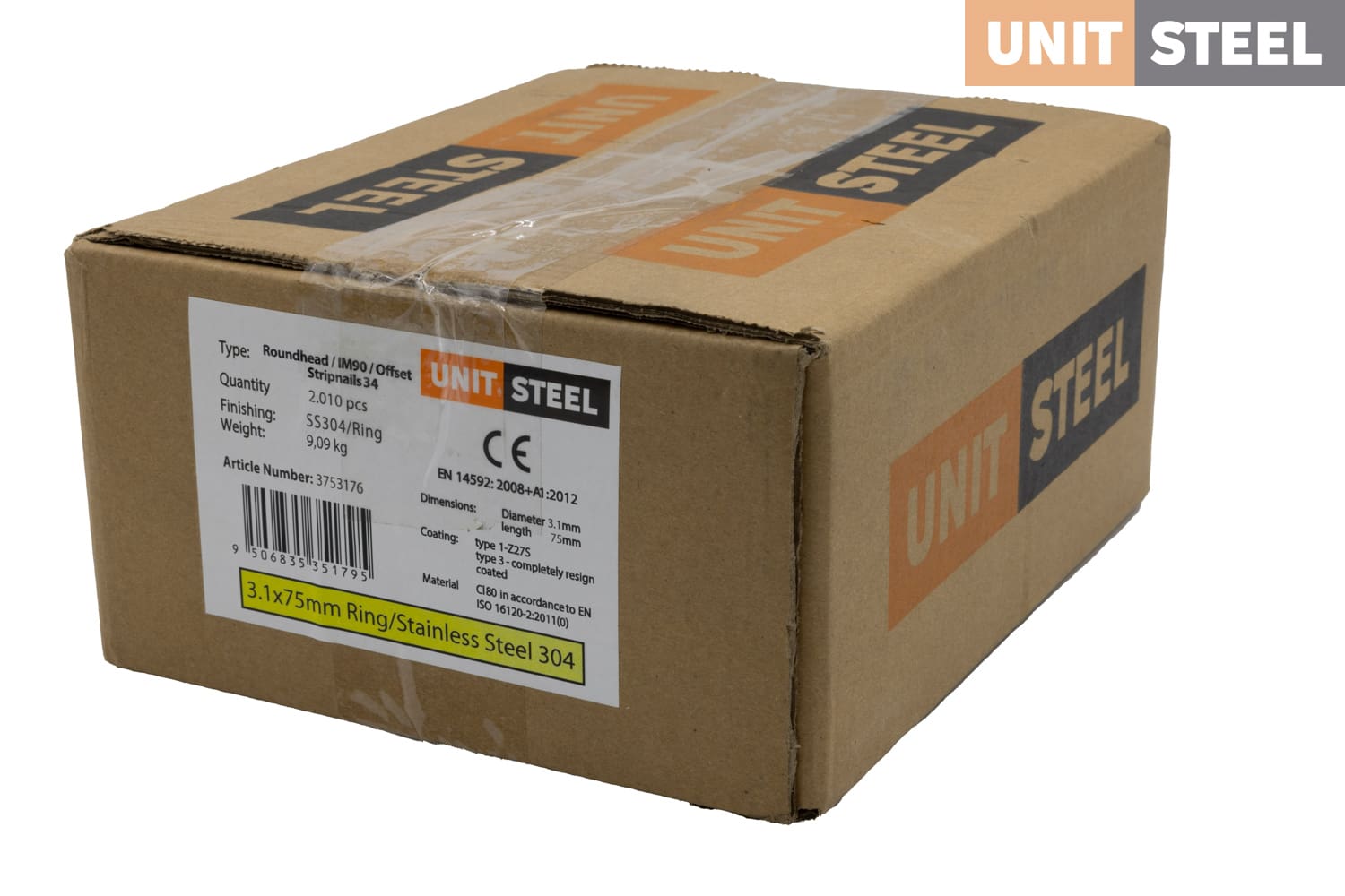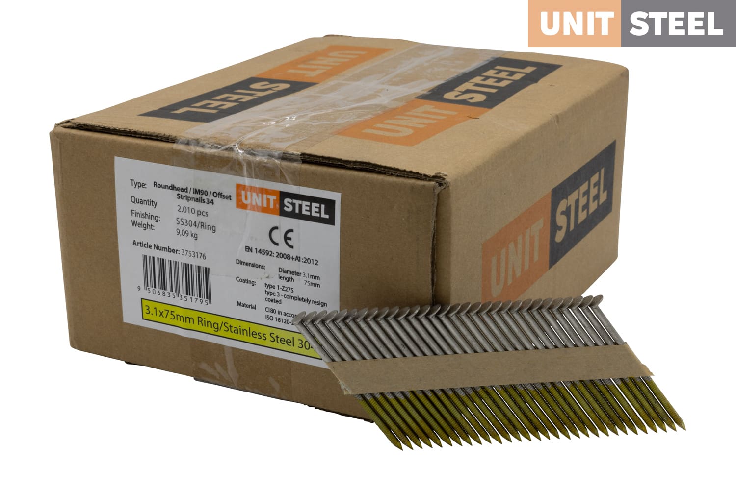 UnitSteel 34º Stripnagels RONDKOP 3,1X75mm Ring/RVS
