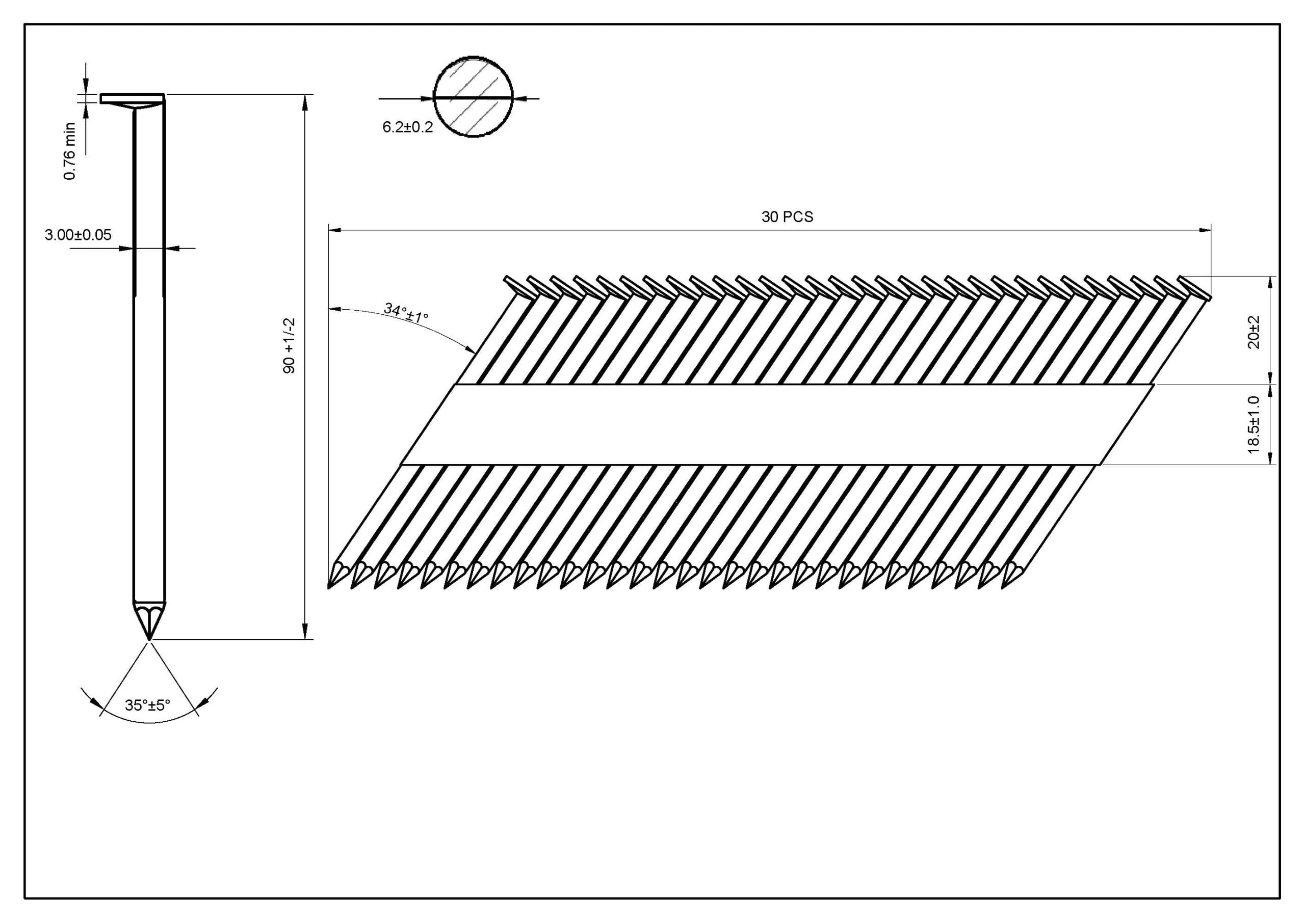 UnitSteel 34º Stripnagels RONDKOP 3,1X90mm Glad/Gegalvaniseerd