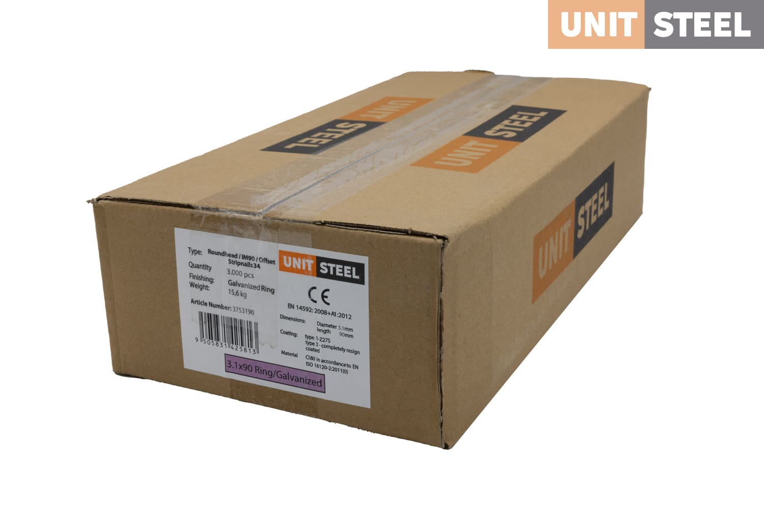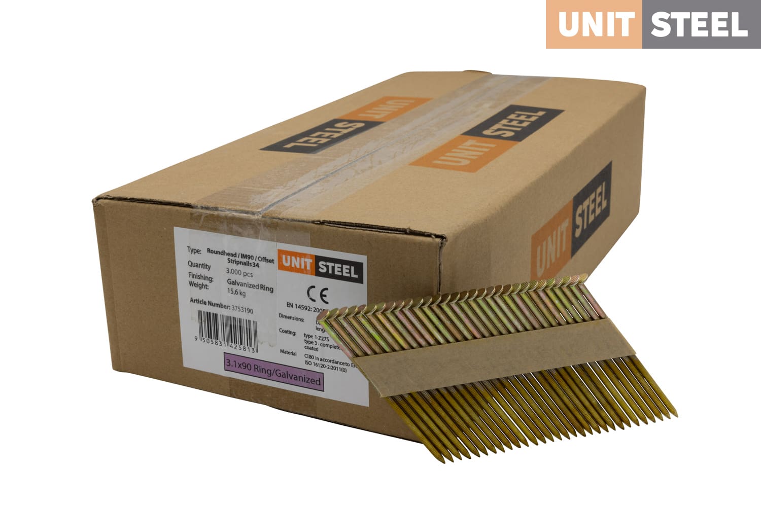 UnitSteel 34º Stripnagels RONDKOP 3,1X90mm Glad/Gegalvaniseerd 3.000 stuks