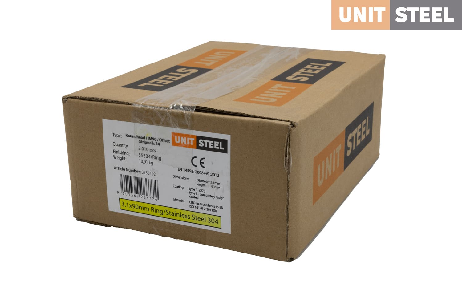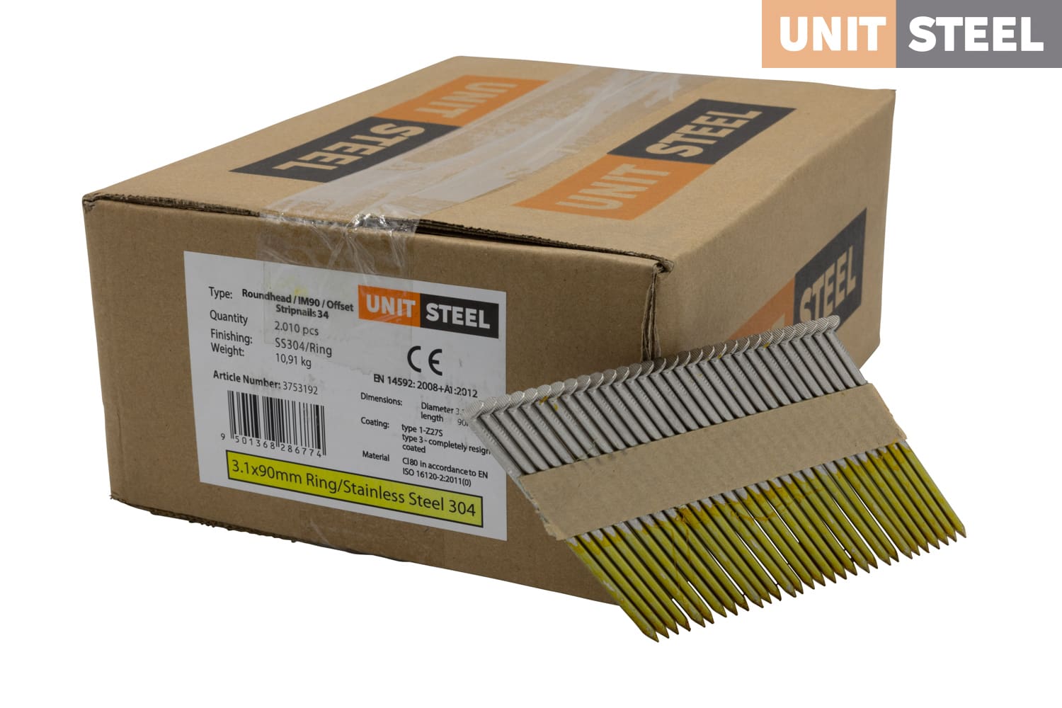 UnitSteel 34º Stripnagels RONDKOP 3,1X90mm Glad/RVS 2.010 stuks